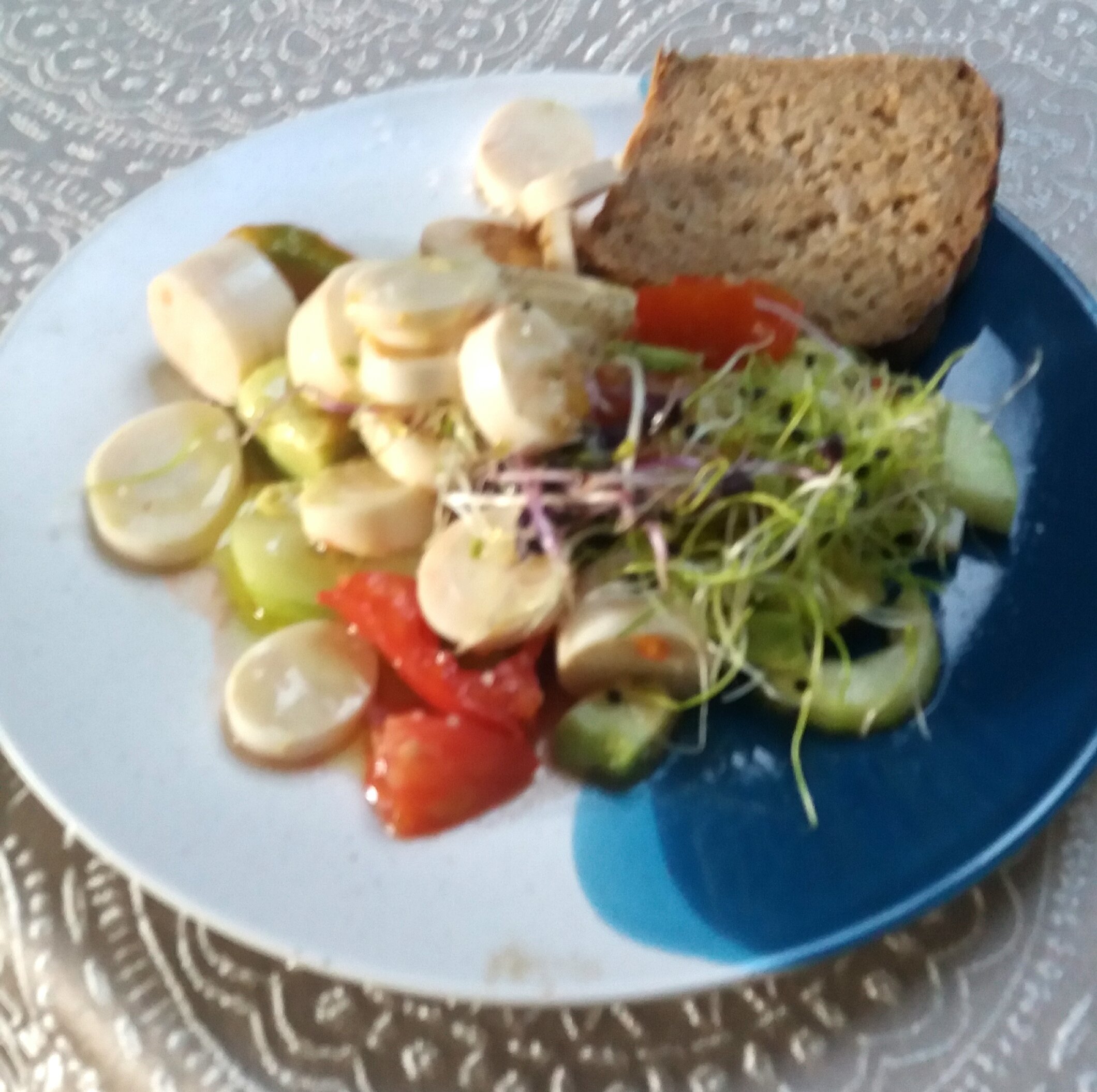 En cas de 10h. Avec une tranche de pain de petit épeautre et de la tomette de chèvre au lait cru (déjà mangé )