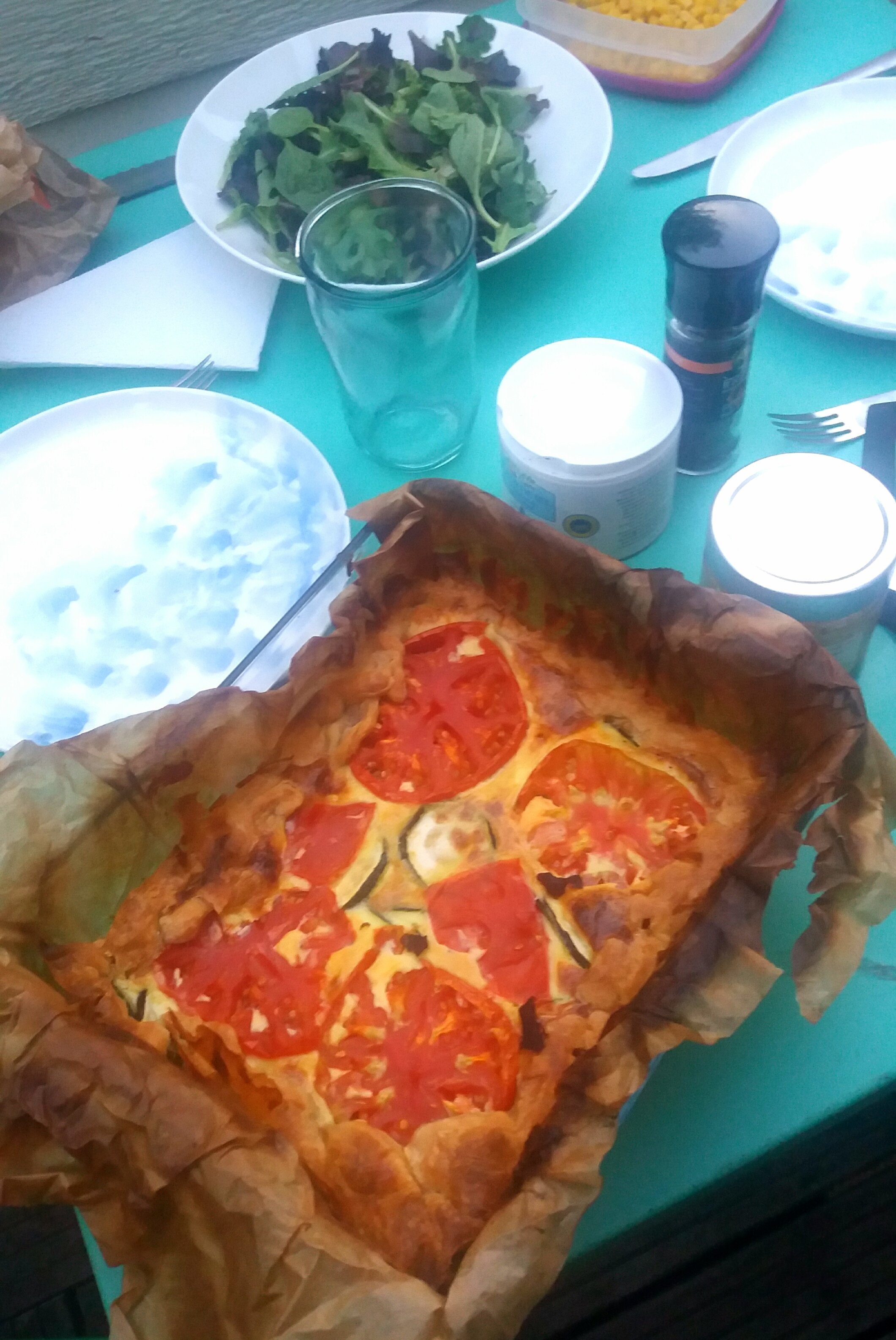 Une tarte rustique de courgettes tomates et chèvre frais. Classique et efficace.