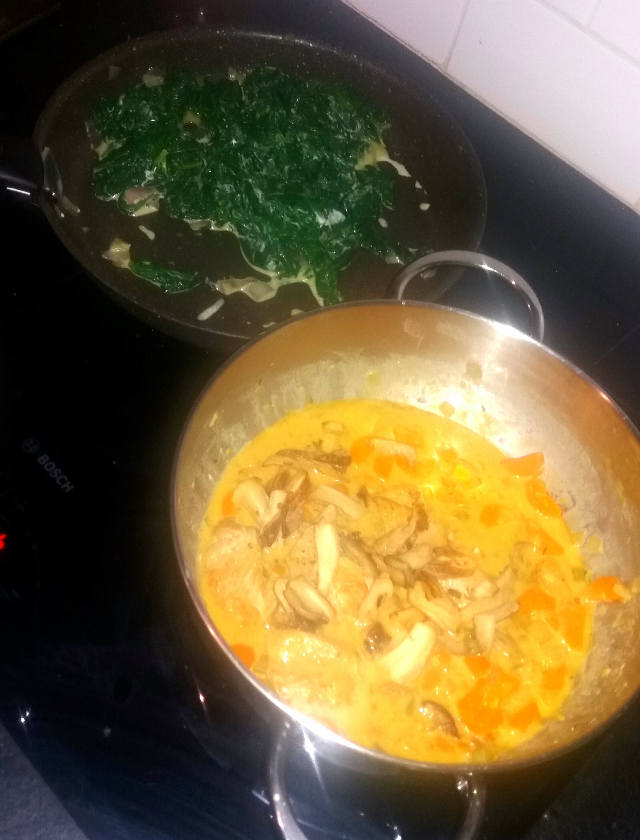 Bordel le repas est prêt depuis 1h mais j'attends que ma copine raccroche le téléphone. Je suis en train de m'auto-digérer j'ai rien bouffé aujourd'hui et je déteste manger trop tard....Blanquette de dinde ultra allégée (sauce au skyr) carottes pleurottes celeri et des epinards