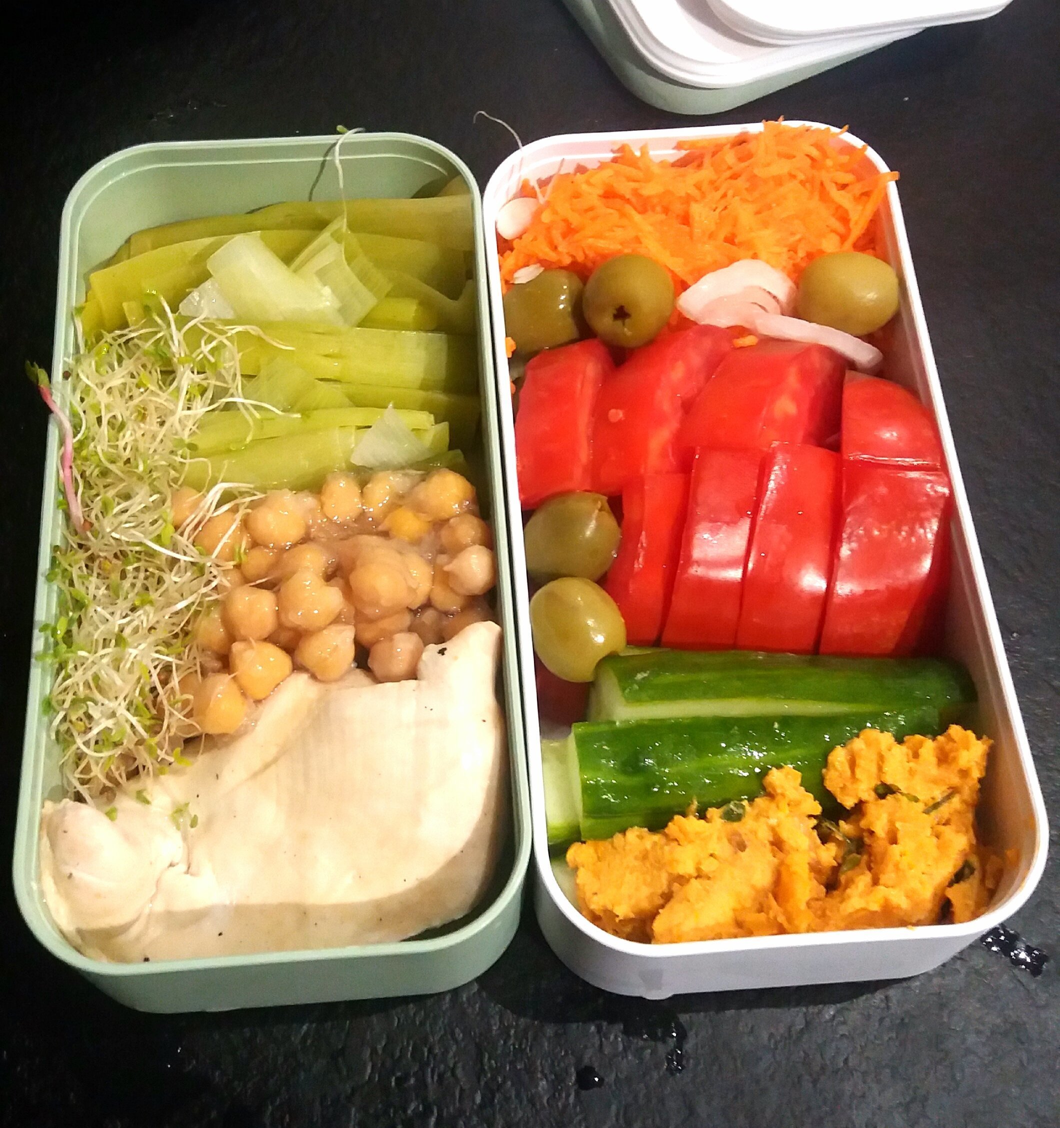 Pendant que les légumes et le poulet vapeur cuisent j'ai découpé le reste des crudités pour demain.