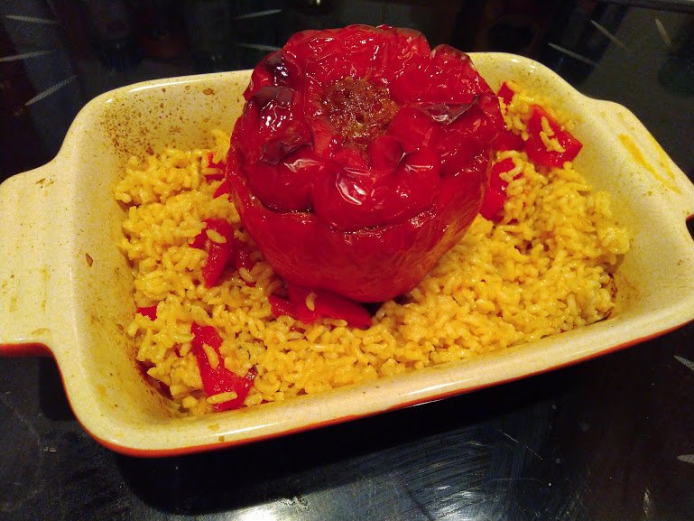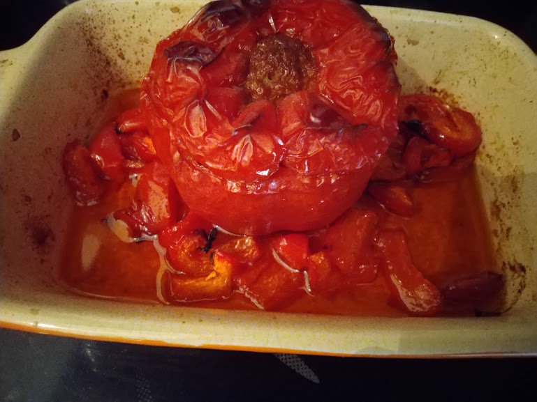 Les poivrons qui ont cuit dans l'huile d'olive + une partie du gras de la merguez