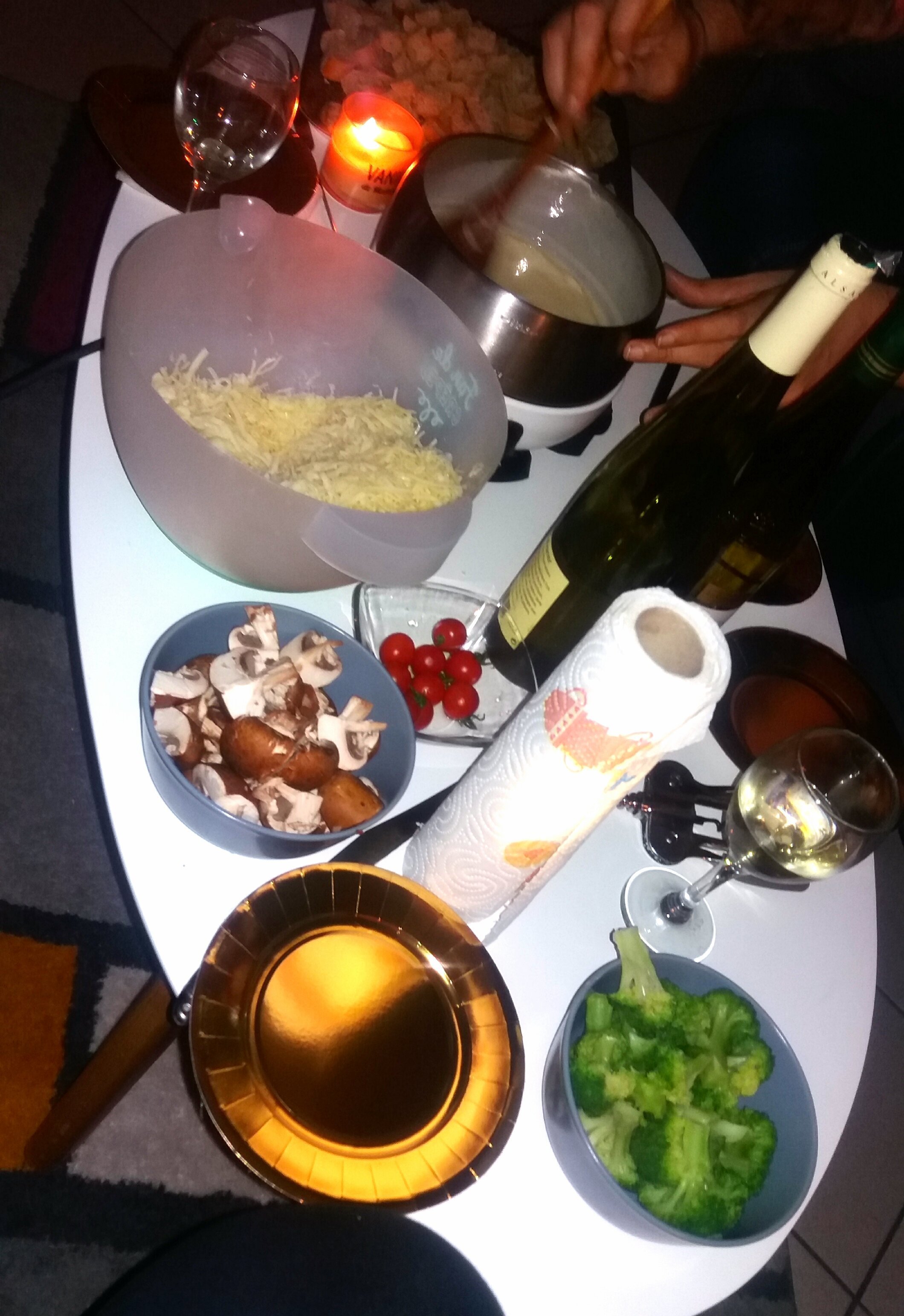 Ce soir fondue j'ai remplacé le pain par des champis et des brocolis