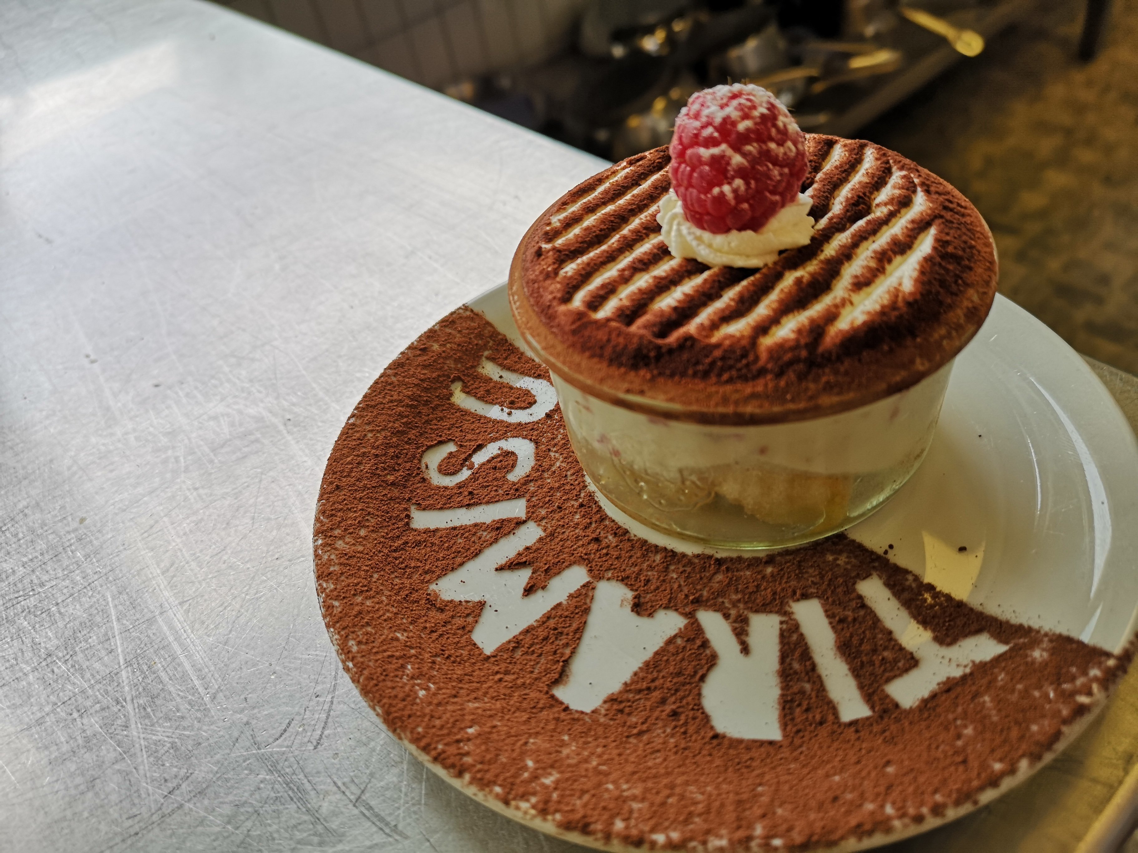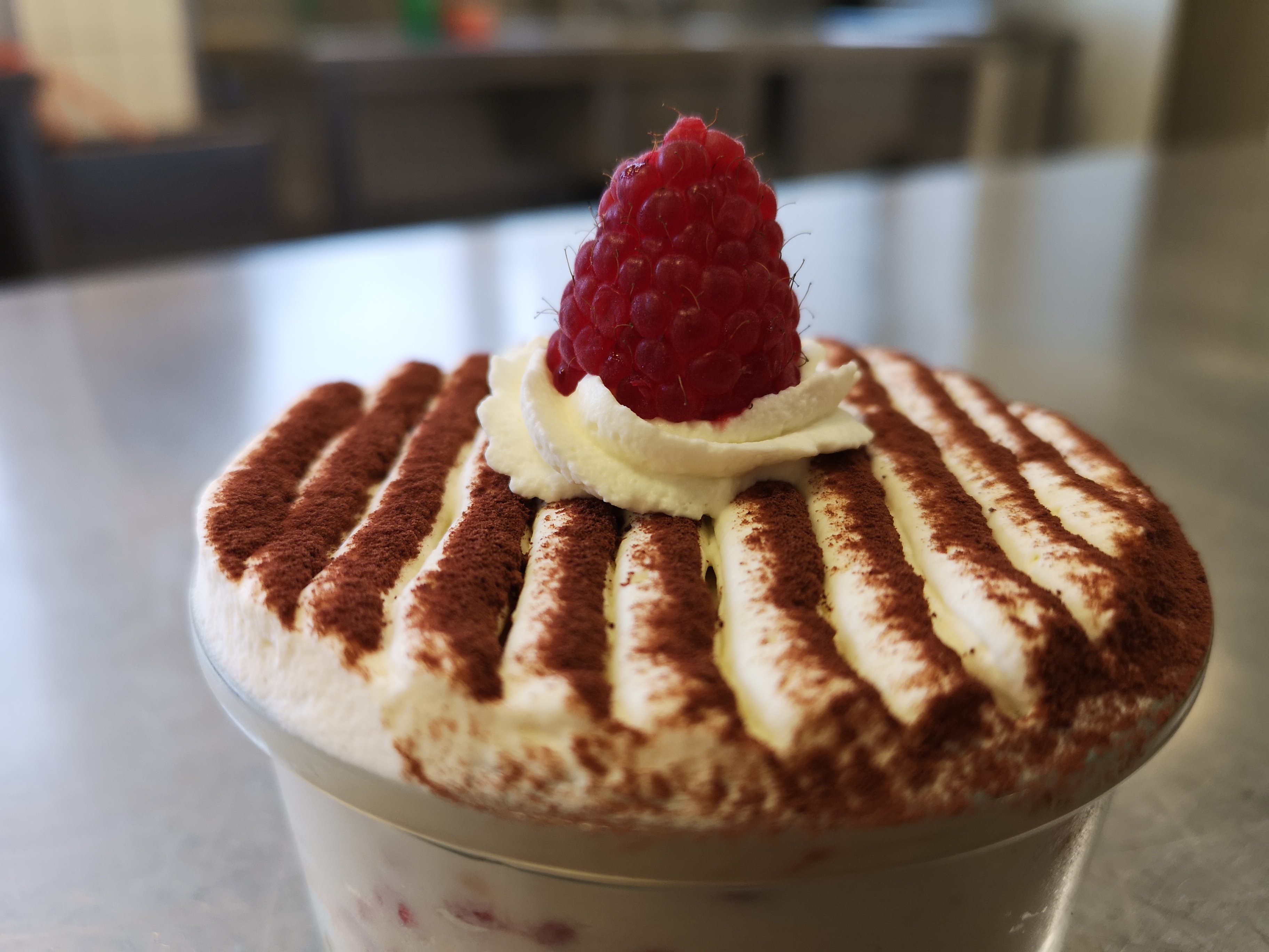 En dessert le Tiramisu framboises décoré à ma façon