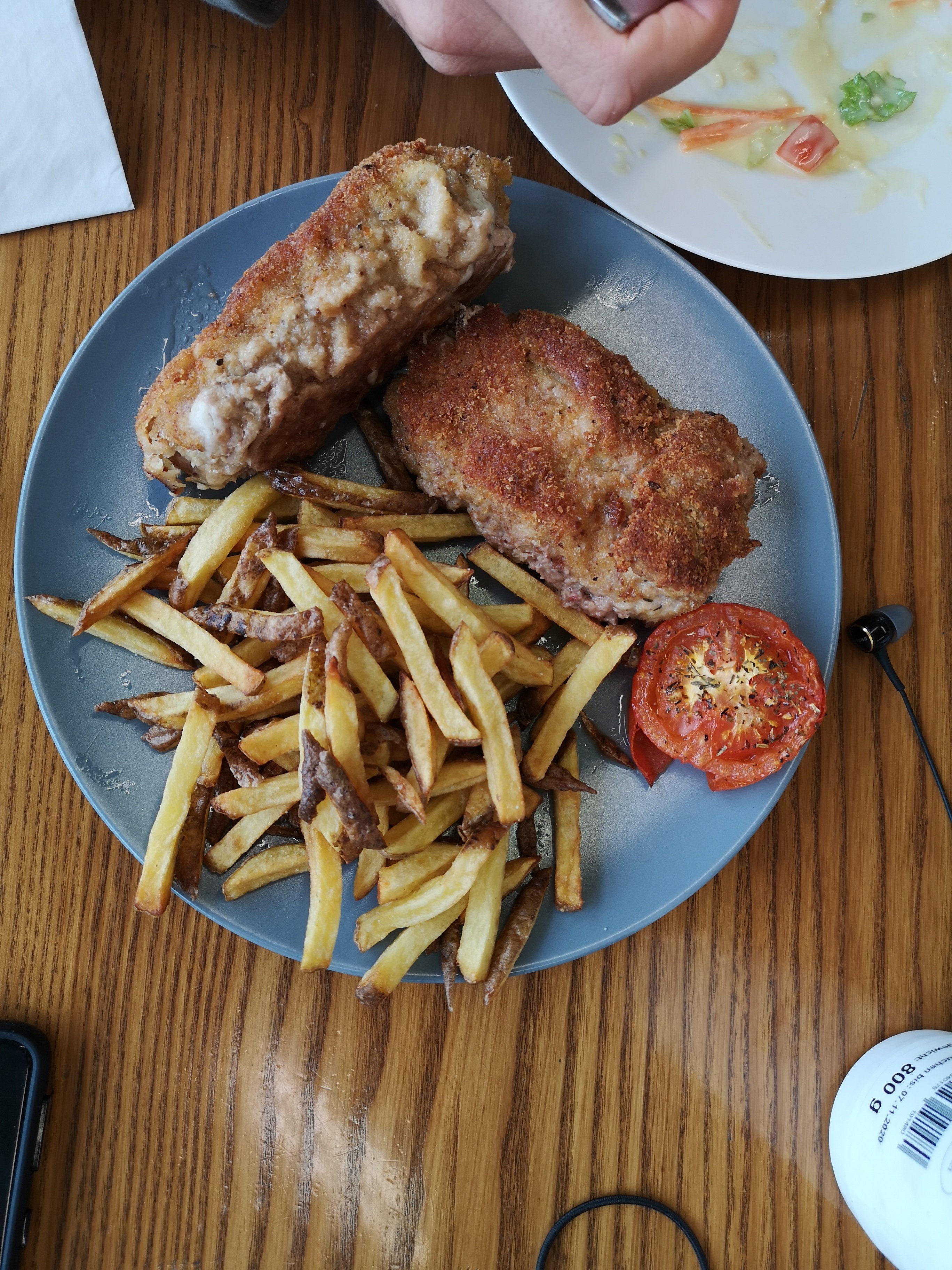 Voilà pour le menu aujourd'hui : cordon bleu avec tomate provençale et frites maison.![]()