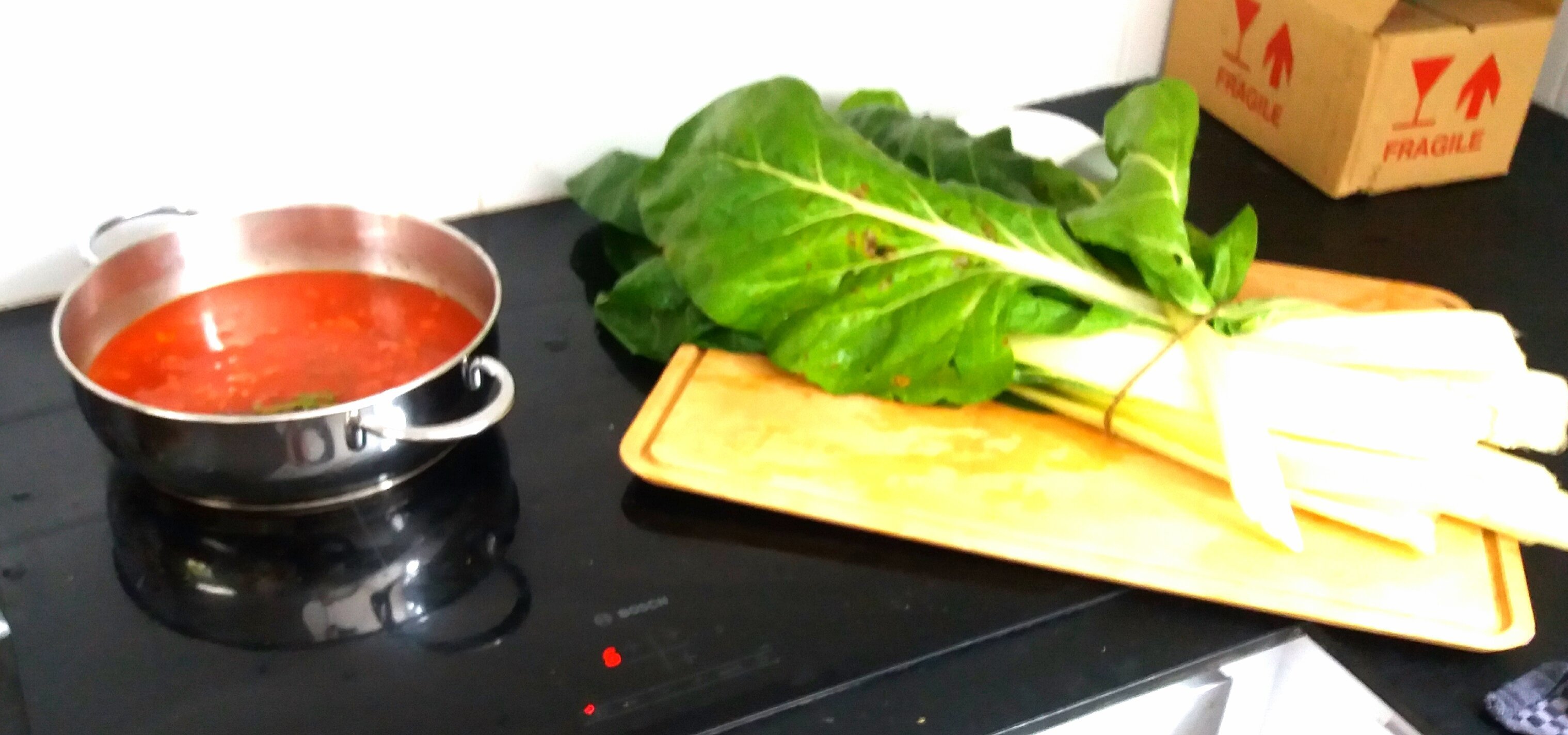 J'ai fais un gros gratin de côtes de blettes du jardin aussi avec une sauce tomates maison et une béchamel végétale. J'ai mis du poulet dedans ca va me faire les déjeuners sur quelques jours.