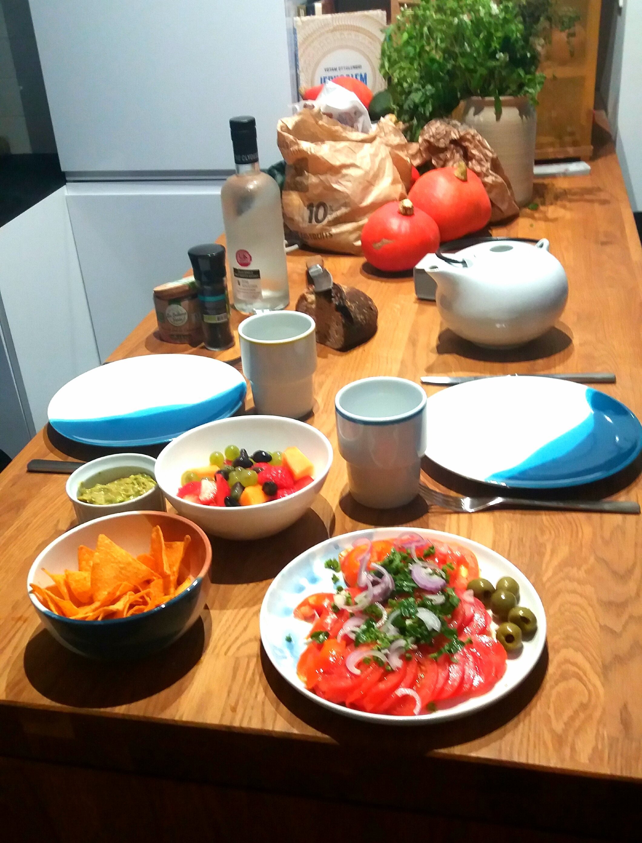 On a récupéré des pommes des potimarrons du raisin et des herbes fraîches du jardin