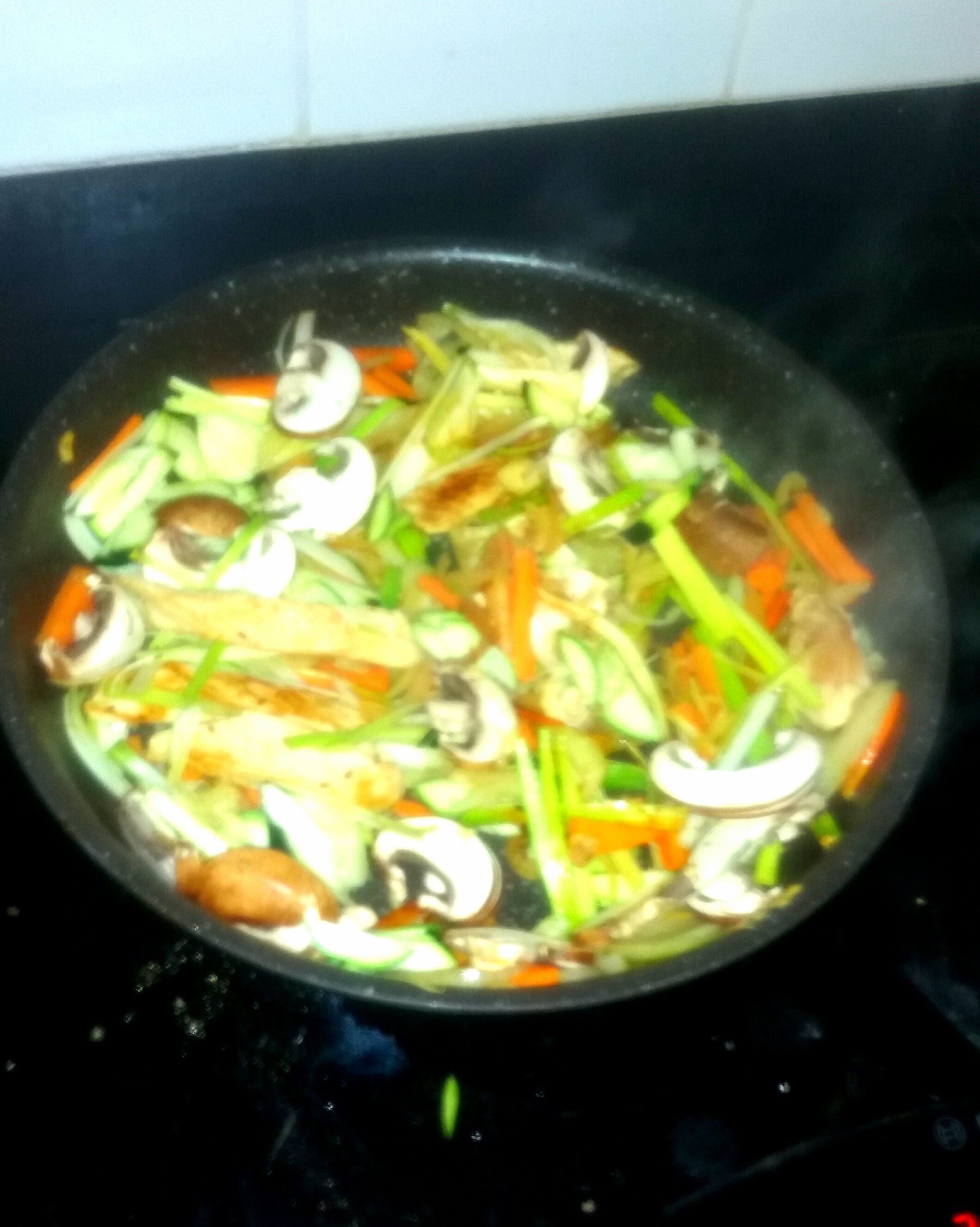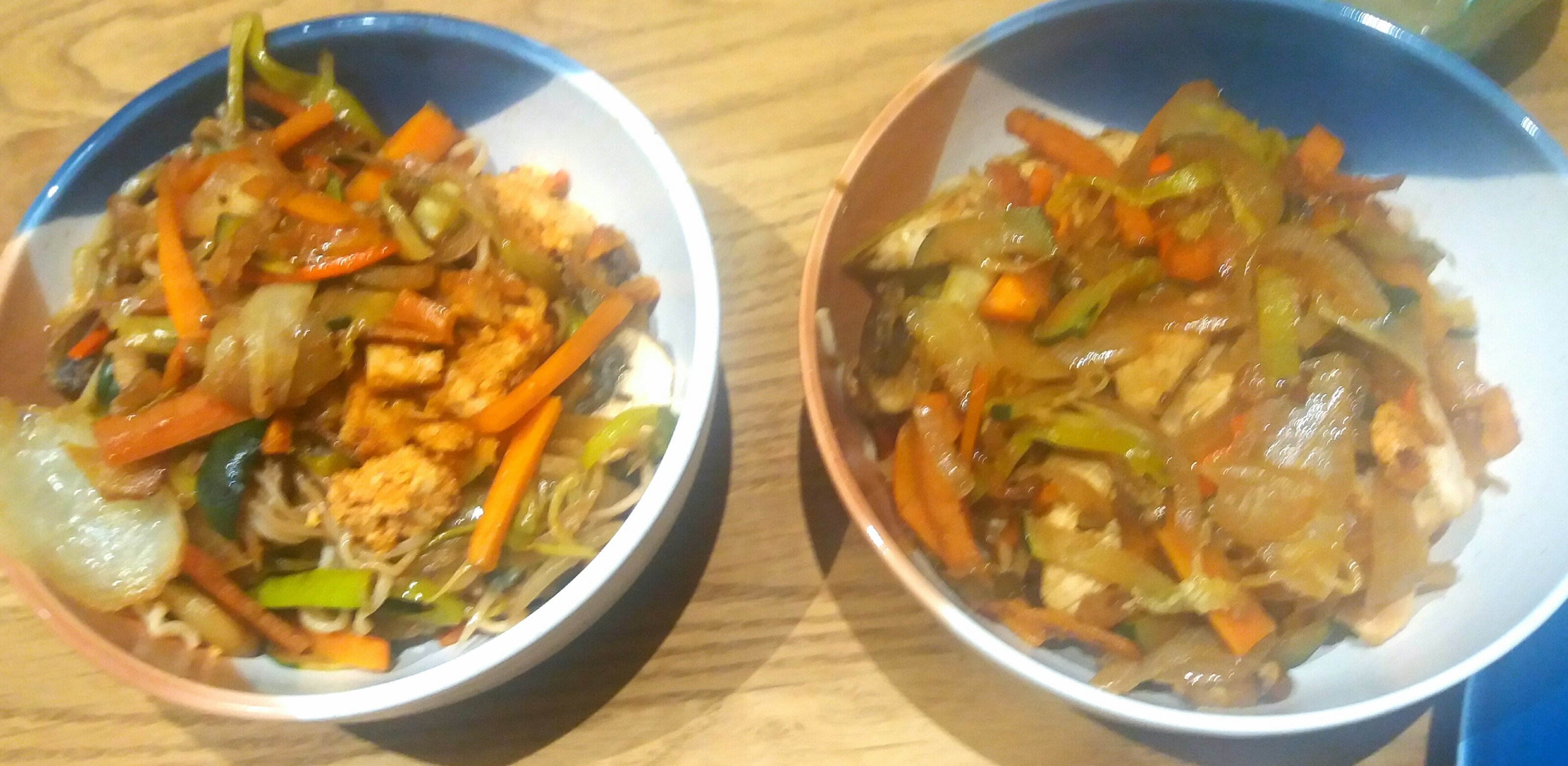Je les fais sauter avec des légumes et de la dinde (pour moi ) et du tofu (pour madame2)