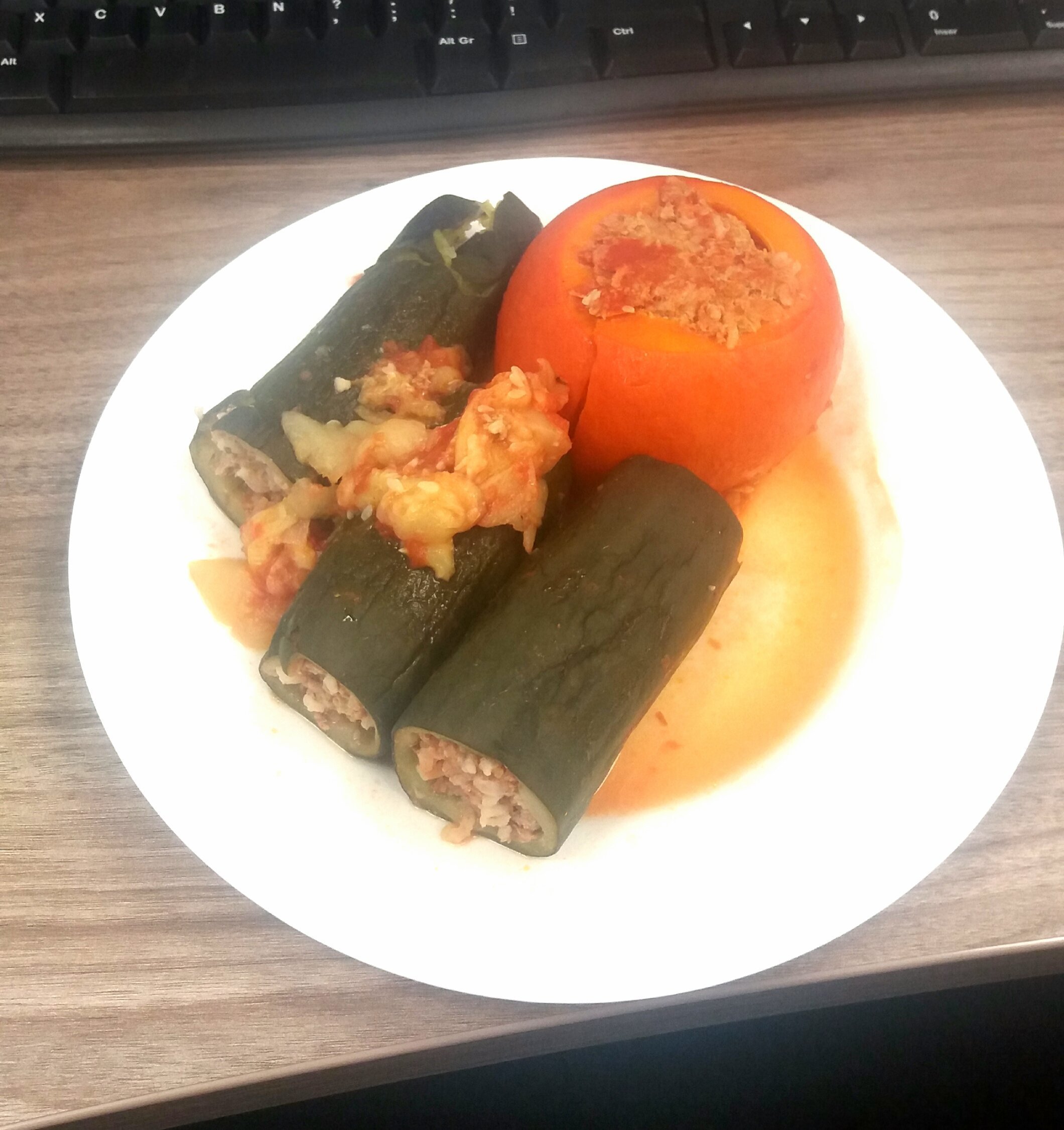 Courgettes et potimarron farcis à la libanaise (veau riz complet épices menthe persil ail et oignons)
