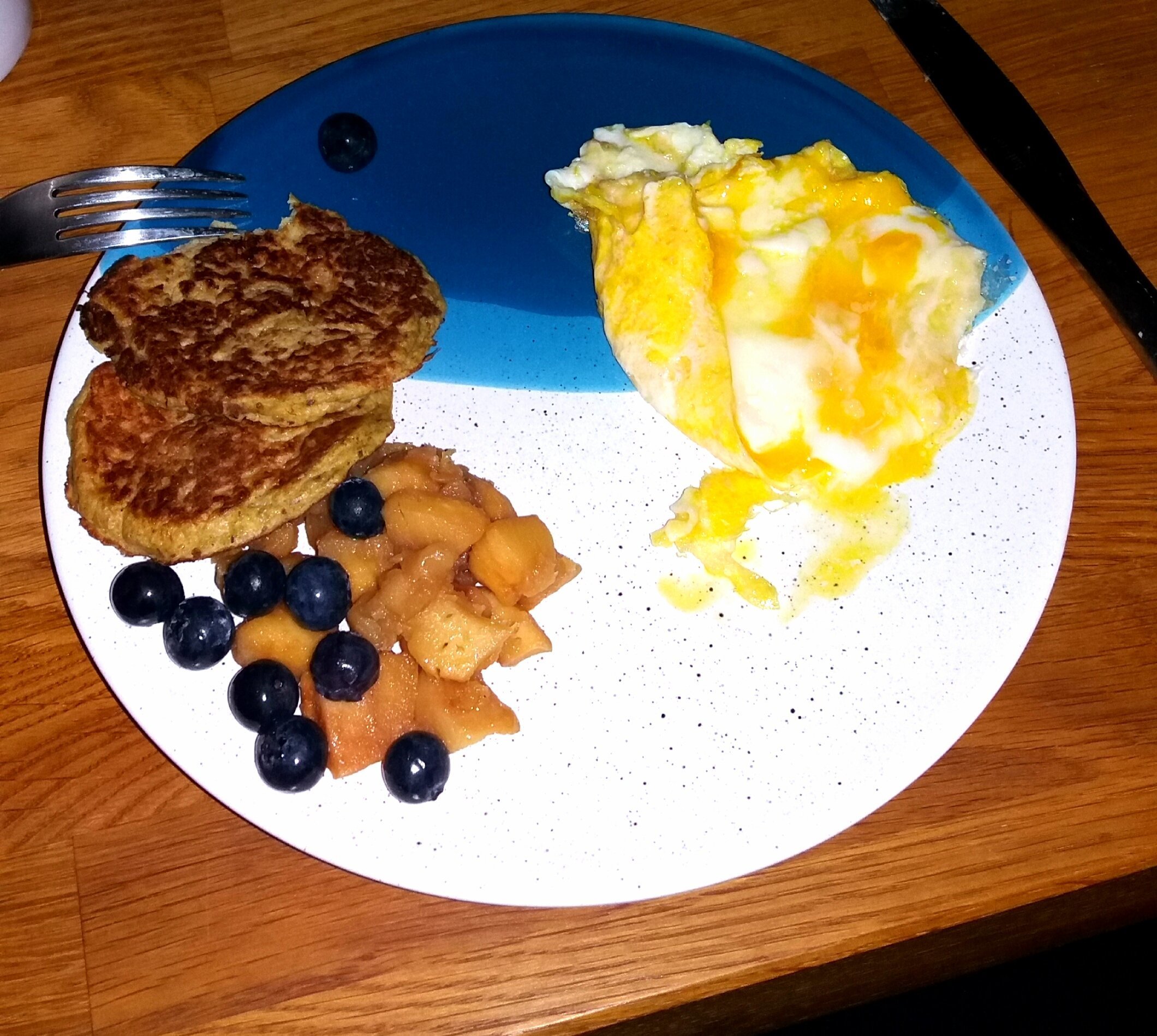Là je vais préparer des pancakes à base de psylium farine de chia et farine de lupin pour aller avec la compote pour le petit déjeuner. Étant donné que ce sont des pommes sauvages elles ont très peu de sucre.