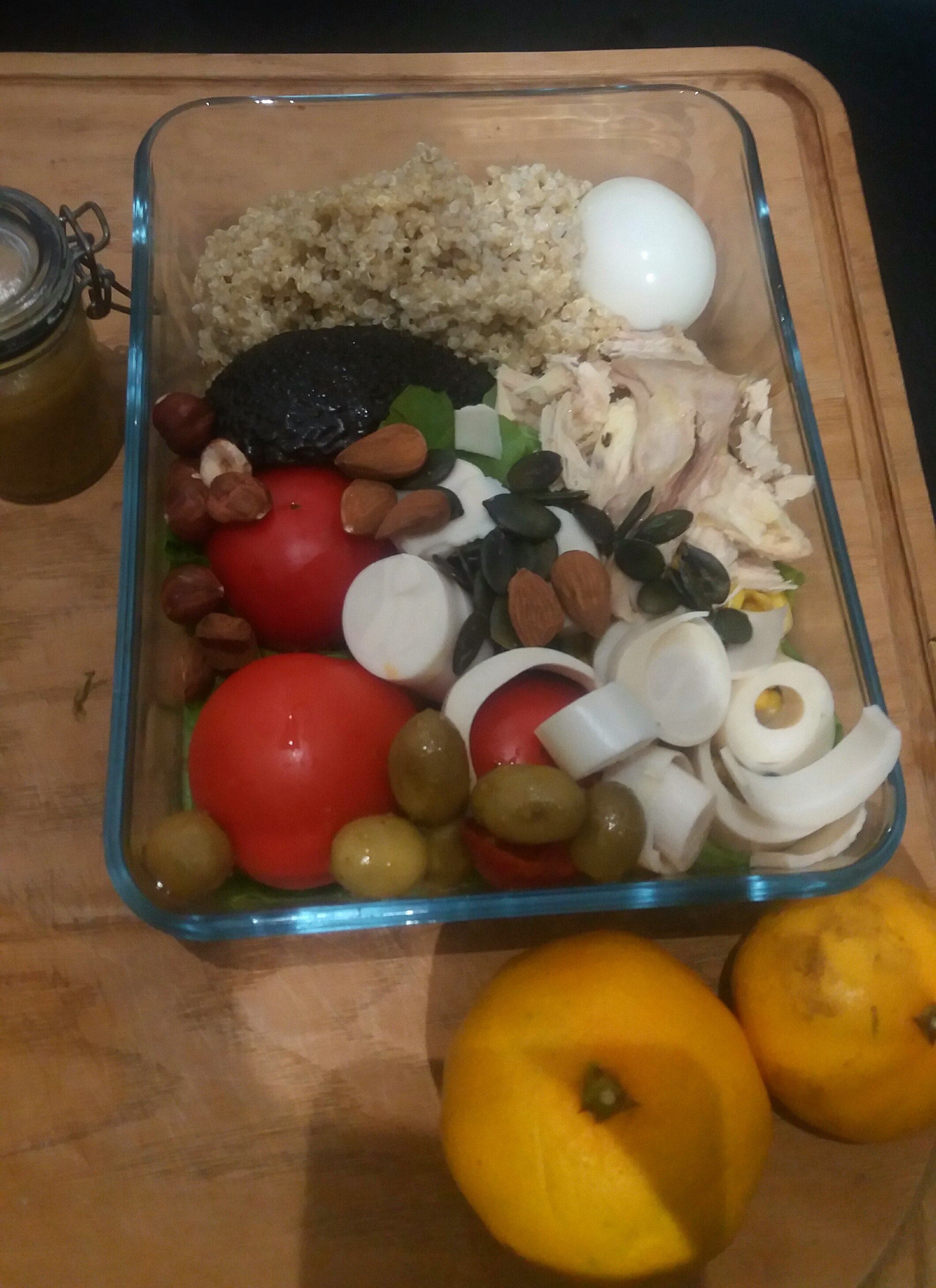 Pour demain grosse salade de crudités quinoaoeuf poulet