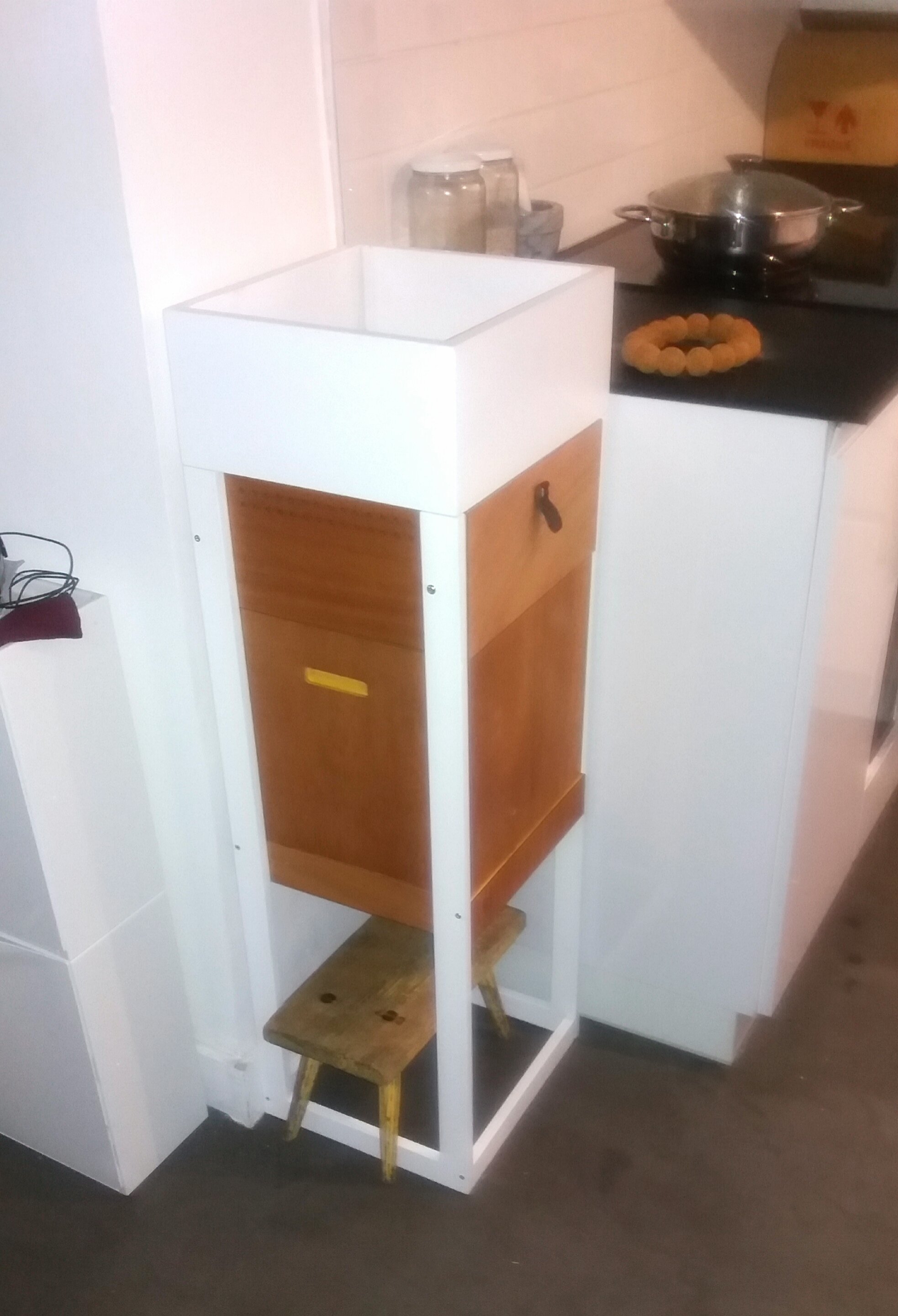 C'est un lombicomposteur ! Je vais faire un mini carré des simples dans le bac du dessus. Comme ca j'aurais toujours les herbes fraîches à portée de main je pourrais l'alimenter avec le lombri-thé et je pourrais reclycler la plupart de les déchets de cuisine.