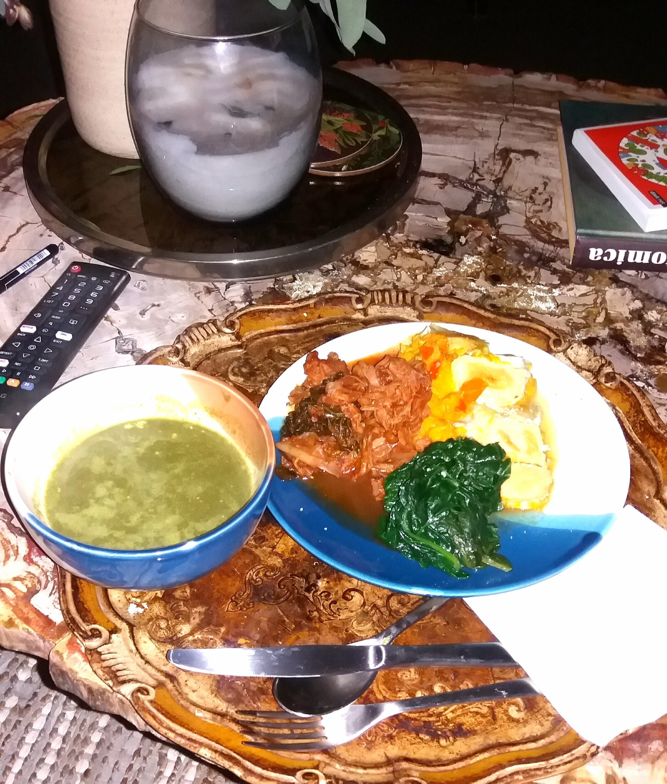 Pas mal le petit fricthi improvisé! Ce soir normalement on fait gratin de potimarron au chèvre et épinards.Bordel le chèvre avec épinard