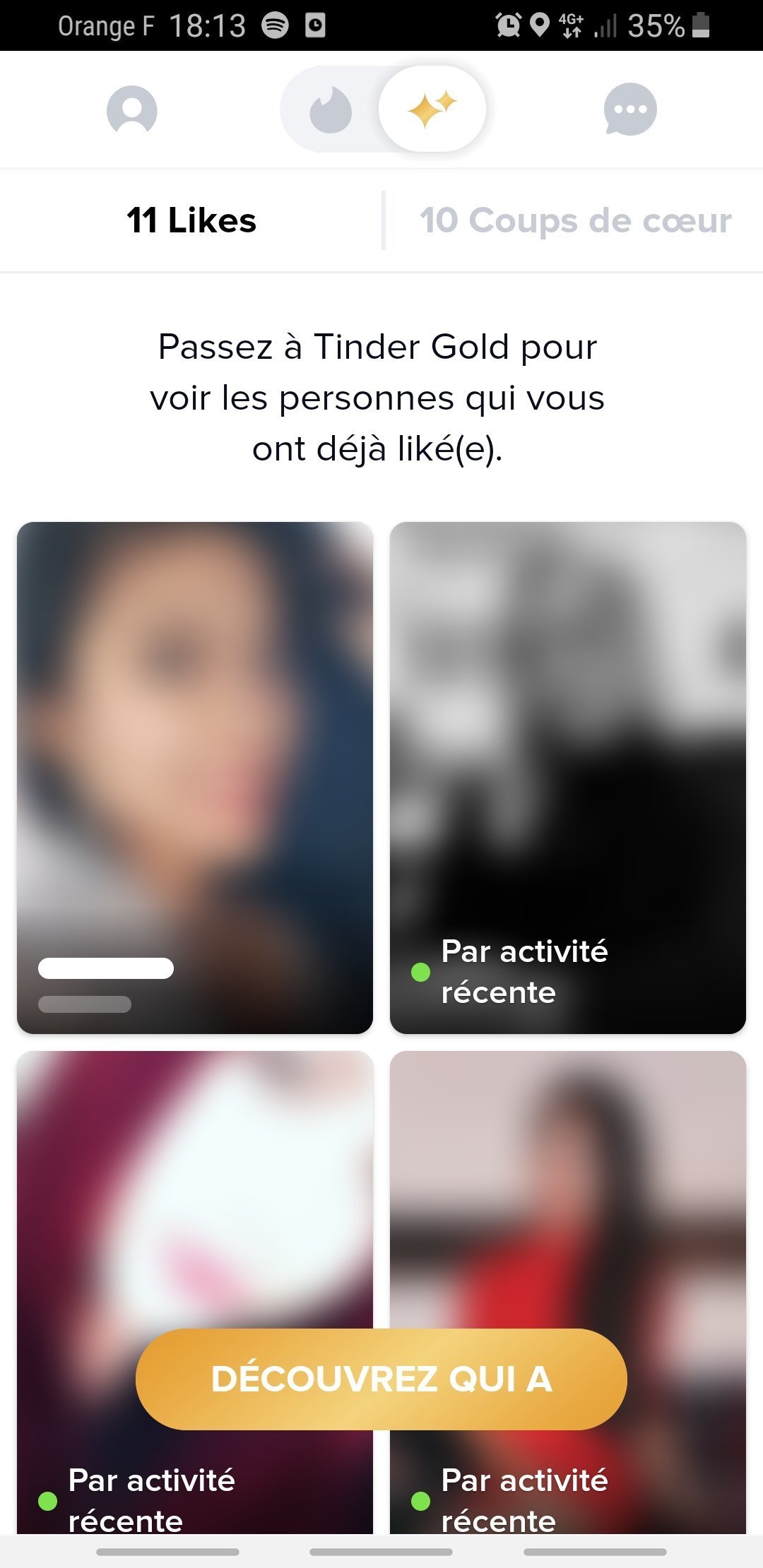 Je fais toujours la techaime du no like comprends plus rienJ’avais lu que l’heure de point sur Tinder c’était le dimanche en fin d’après midi donc essaye de voir demain