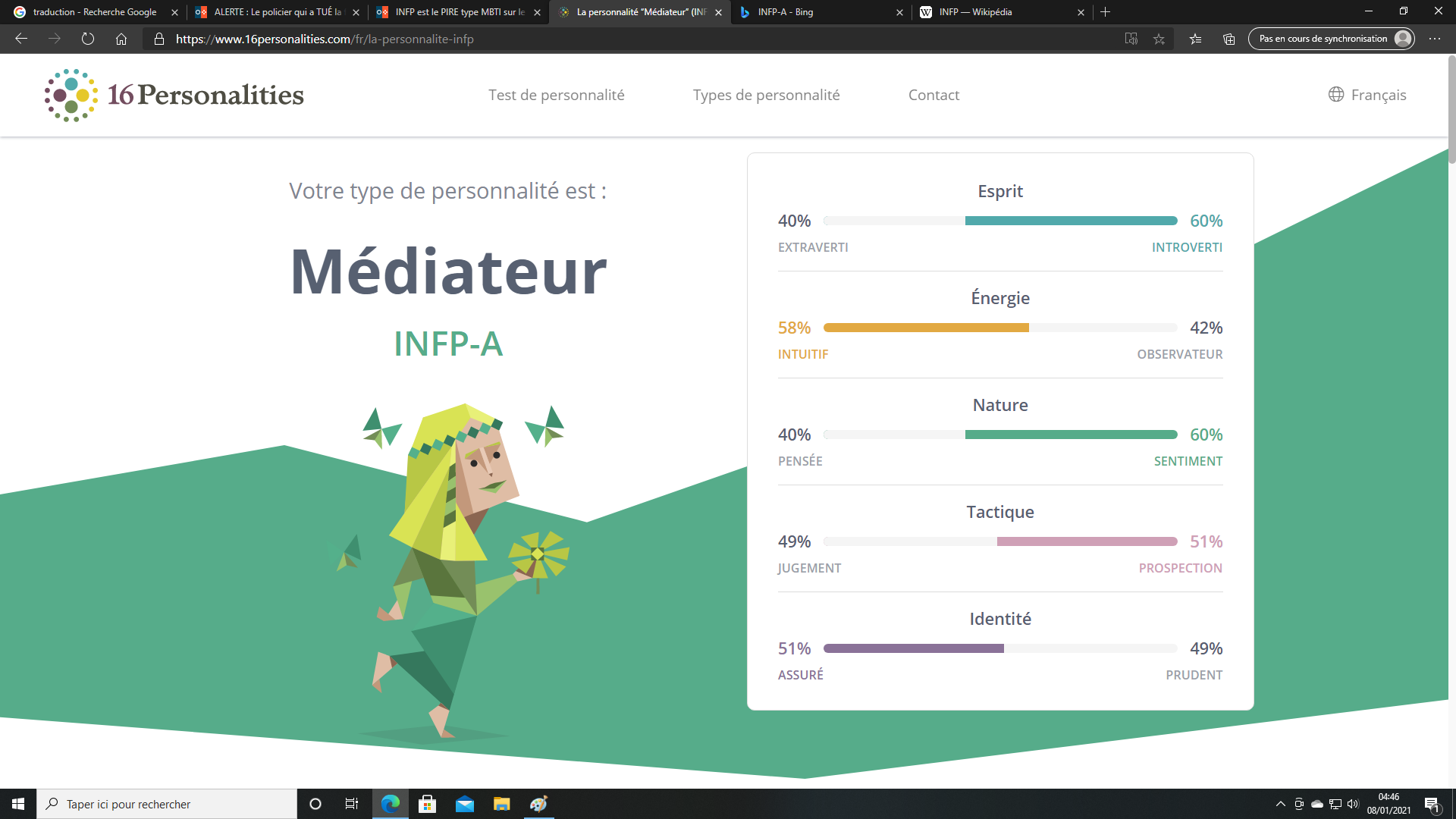 Sur le site 16personnalité je suis ISFP et là je me retrouve ENFJ en grant function