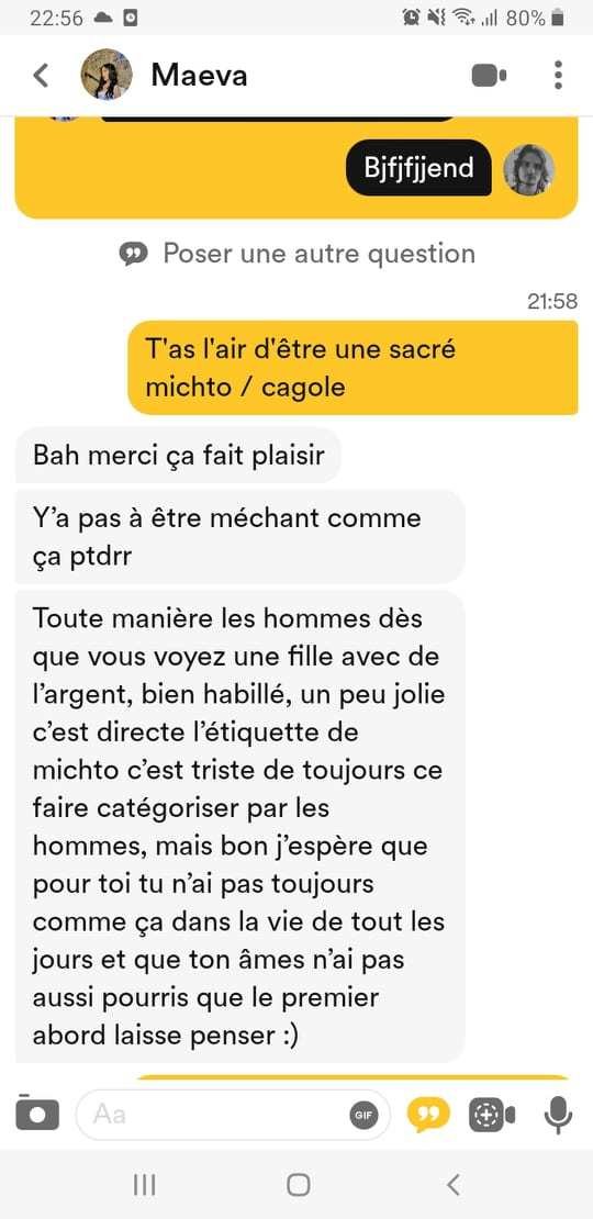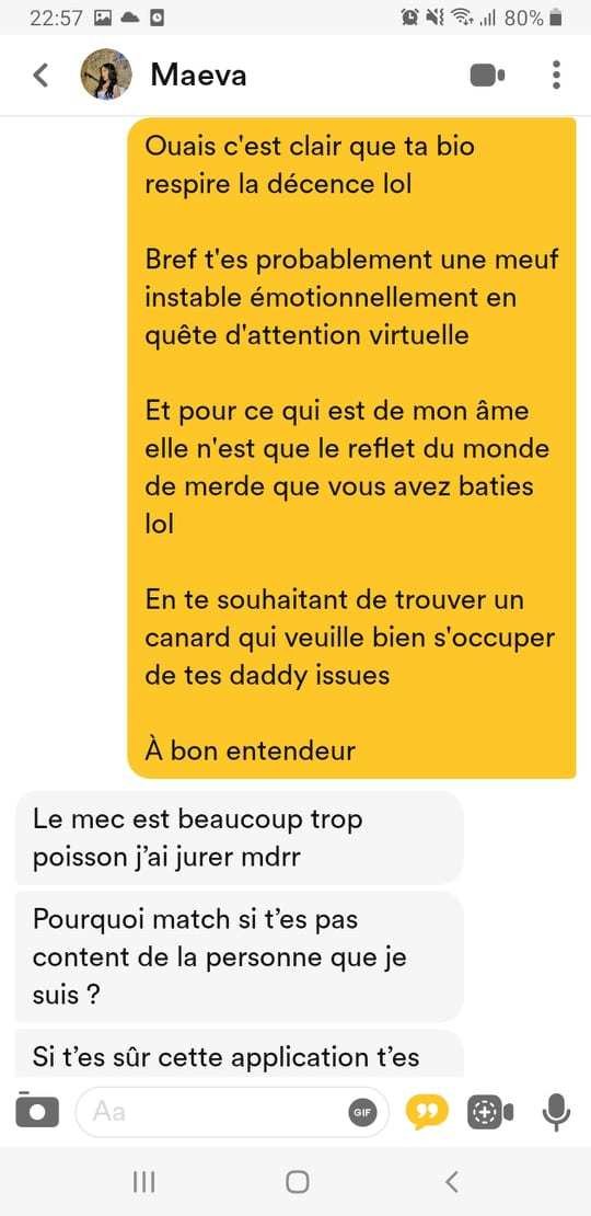 Bordel ça me rend zinzolin les sites de rencontre maintenant j'y vais uniquement pour insulter les filles sur leur manque de valeurs![]()