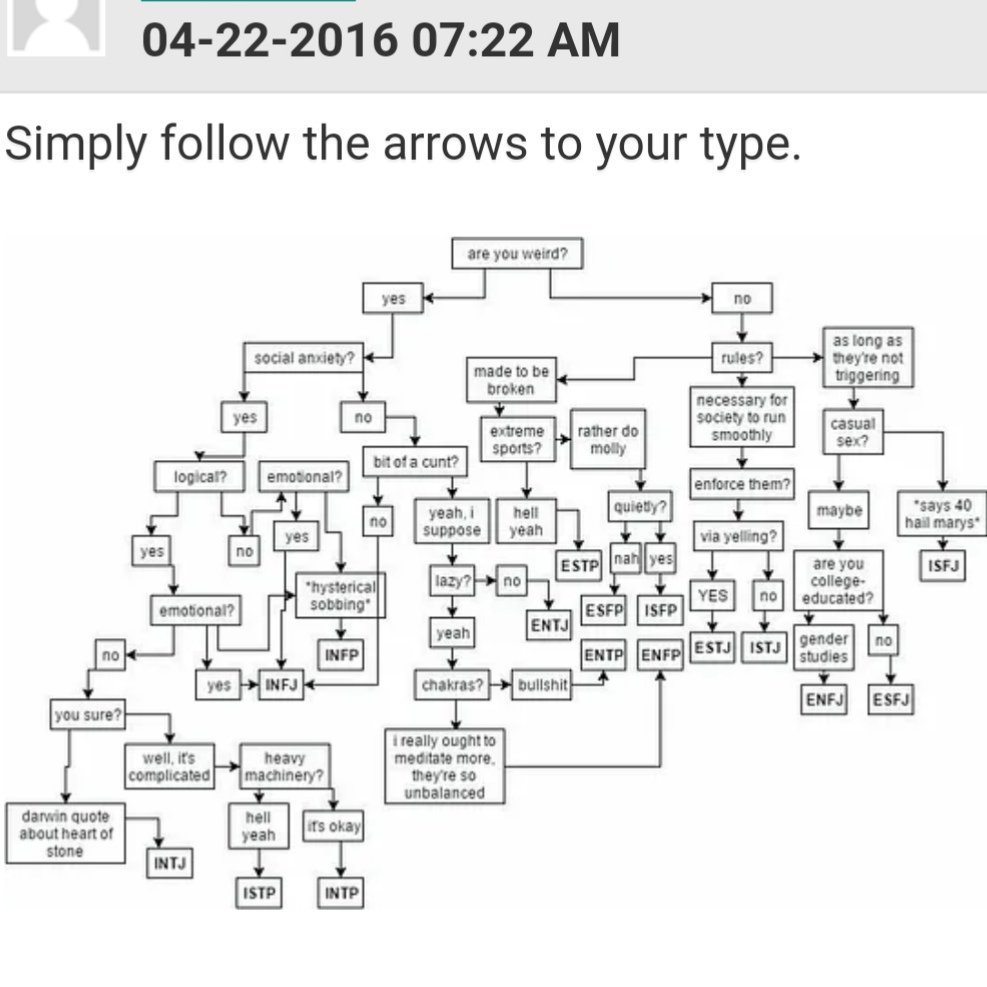 Moi je suis INTJ selon lui.Ah ouais j'aurais pu deviner en plus.