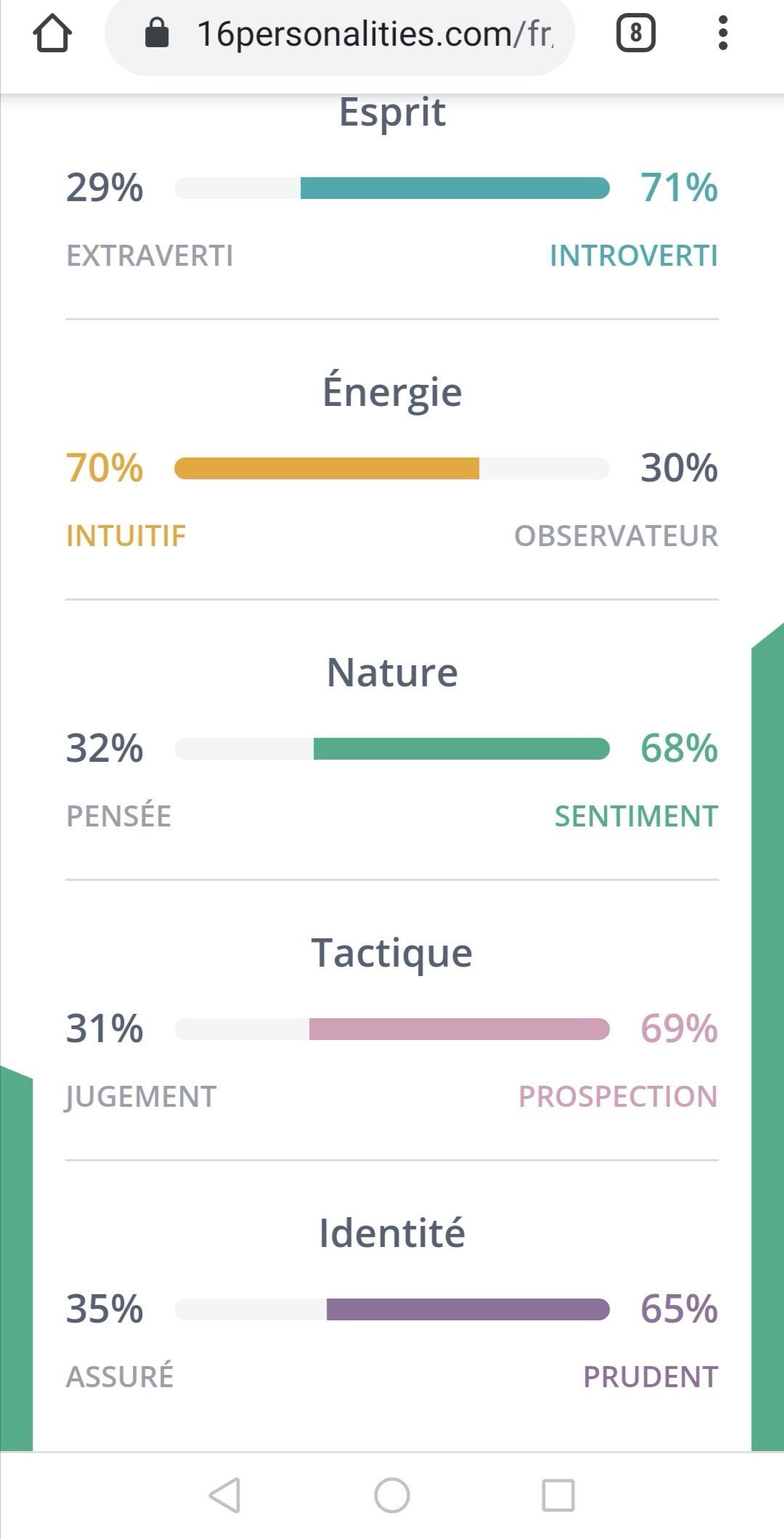 Je viens de refaire le test et je suis INTP maintenant, alors que je l'avais fais plusieurs fois avant et j'étais INFP. Je suis déçu j'ai l'impression d'avoir régressé