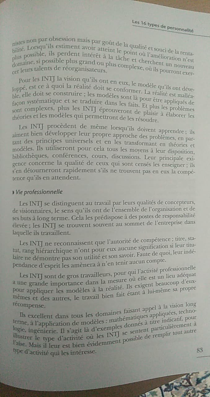 "Bonne synthèse OUI OUI moi j'ai découvert le MBTI directement en comprenant dans son ensemble les fonctions cognitives et leur expression dans la vie de tous les jours"