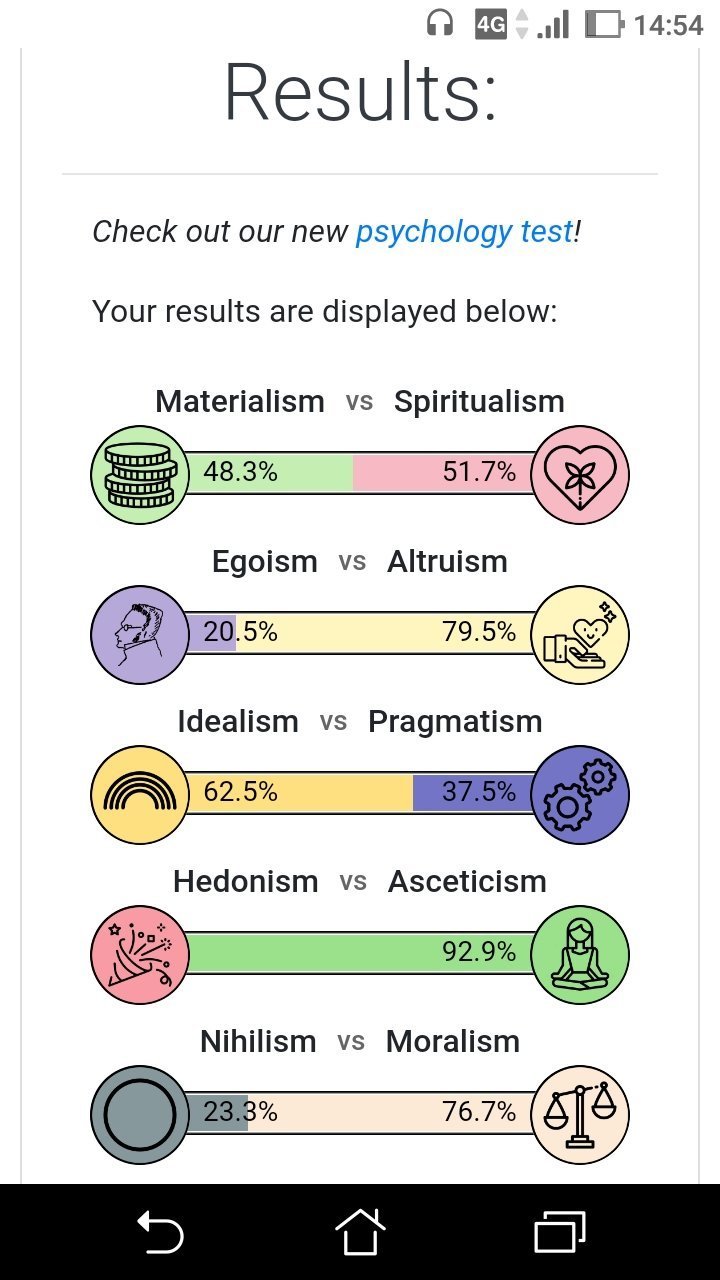Le matérialisme aussi bas c'est surement car suis pas encore indépendant, dans 4-5 ans ça risque d'augmenter.