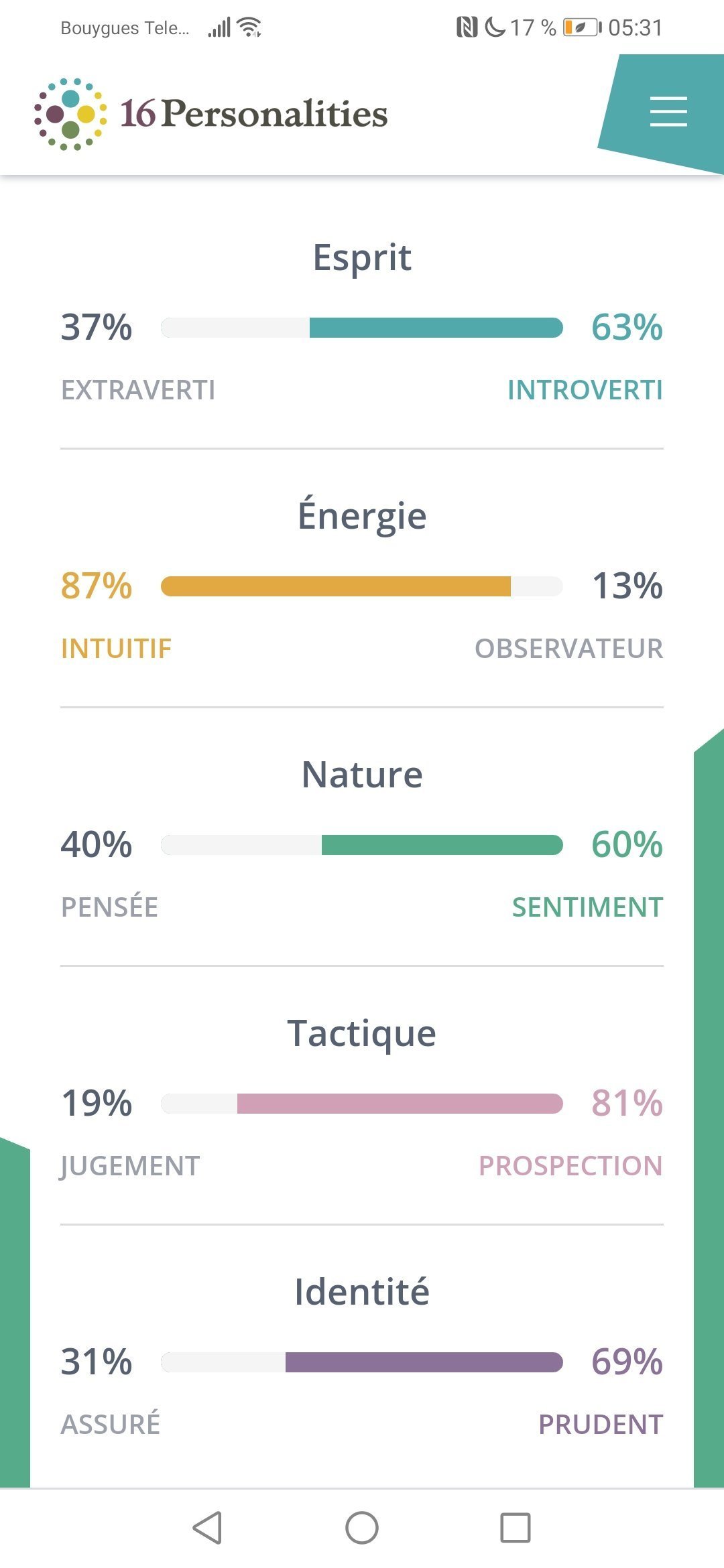 Y a des test plus fiable ? En français si possible j'avais trouvé un autre je me rappelle plus du nom juste que la traduction française laissait à désirer et que ça m'a sorti infp
