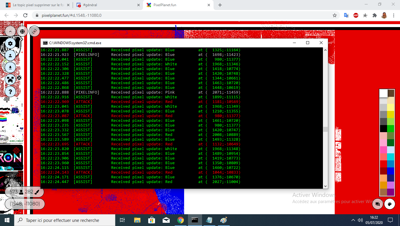 Sérieux tu croix vraiment que tu vas arriver à faire le drapeau avec la moitié des kheys (car l'autre moitié s'est barre) alors que t'as des bots qui recouvrent tout en 2 heures ?Hier a 85 connectés on a bien réussie a faire le rouge en 2-3h