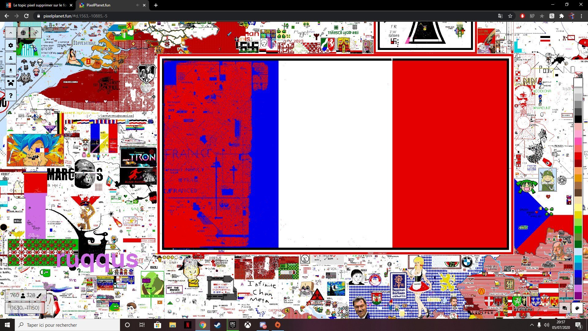 On arrive pas encore a construire la drapeau Français, mais en tout les cas même avec tout ses bots, ses magouilles, son code etc... il arrive pas a se débarrasser de nous, en tout les cas ça fait 3 jours et demi qu'il n'a plus son drapeau nazi tout beau _.gif)
