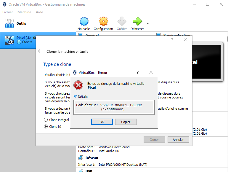 Quand je veux cloner ma vm j'ai ce message d'erreur. Ca vous ait deja arrivé ?