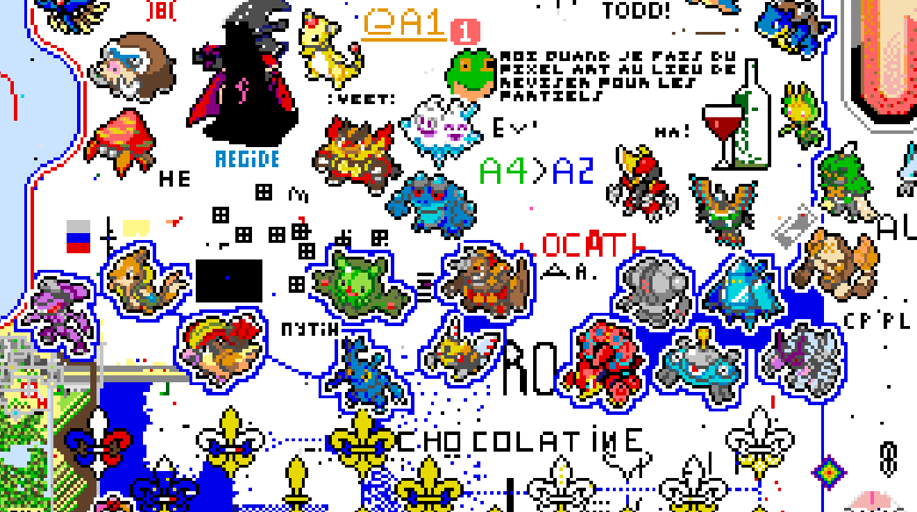 https://pixelplanet.fun/#d,-86,-9359,28 Les cinglés qui détruisent les fan-arts pour mettre les lys par dessus, vous savez qu'on va prendre cher à cause de vous à un moment ?oui srx faut arrêter ça, respectez le taf des autres