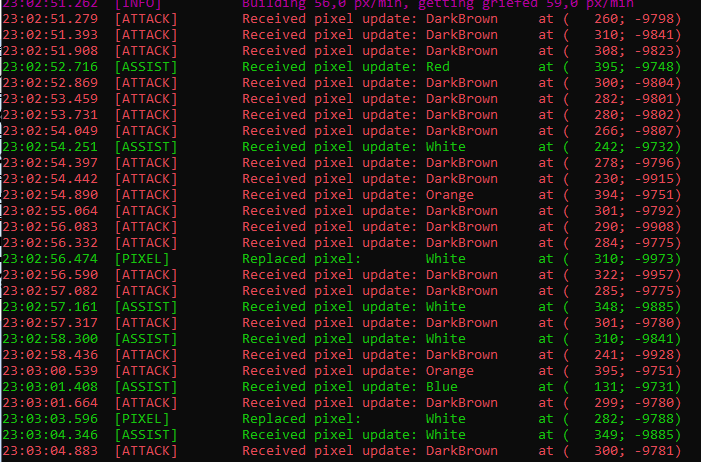 j'ai 4 bots dessus Building 50,6 px/min, getting griefed 43,0 px/min