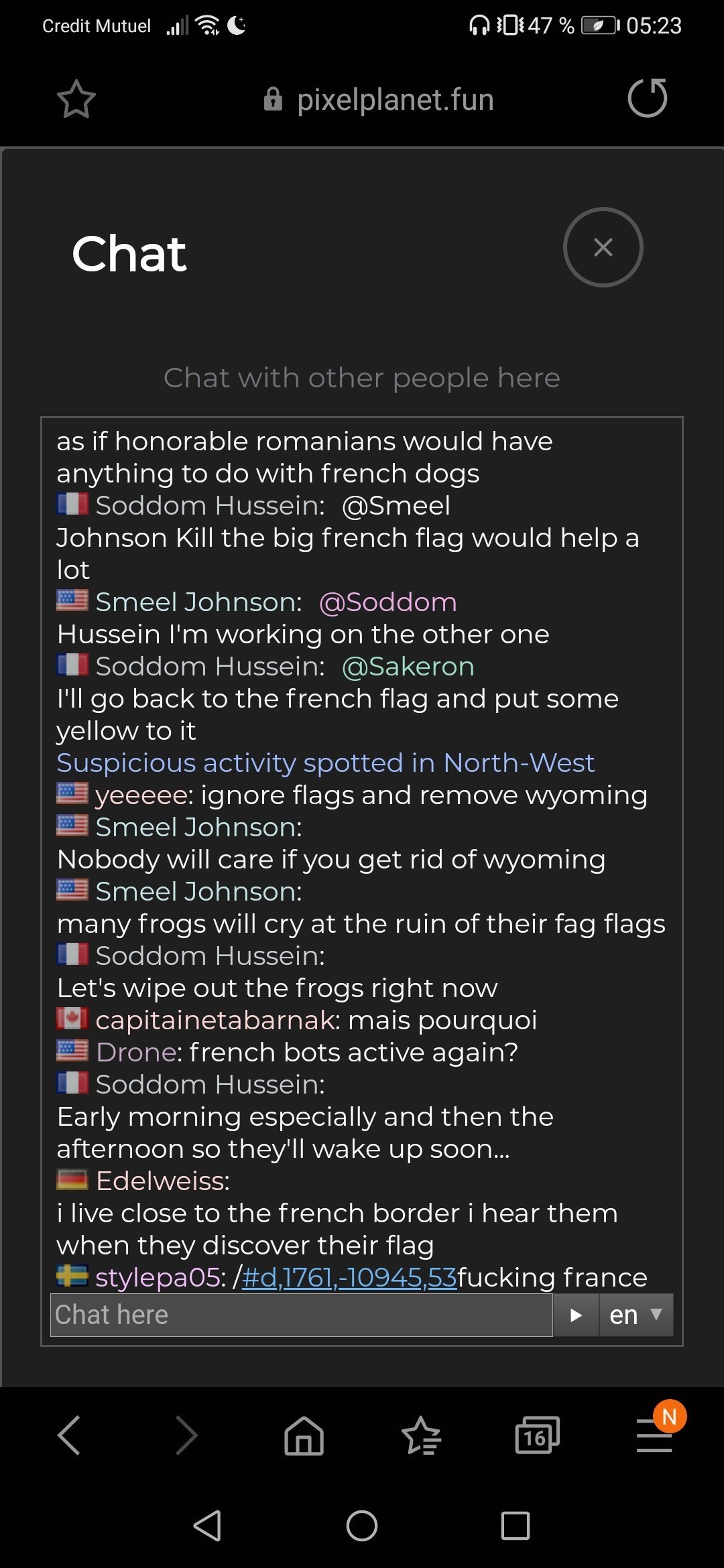 C'est bon je l'ai bien bleuté ce sale extraterrestre qui fait des doigts sur la France : https://pixelplanet.fun/#d,-727,-10458,28