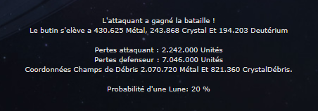 2 millions de métal et 800 000 cristal , donc c'est (un peu) rentable en plus de péter de la flotte ennemie