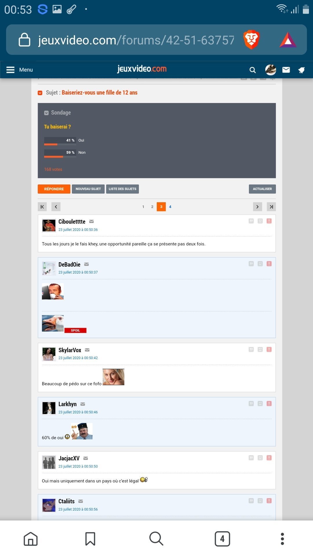 Résumé : Topic avec le titre "Baiseriez vous une milf de 50 ans ?" Modifié par "Baiseriez vous une fille de 12 ans ?"