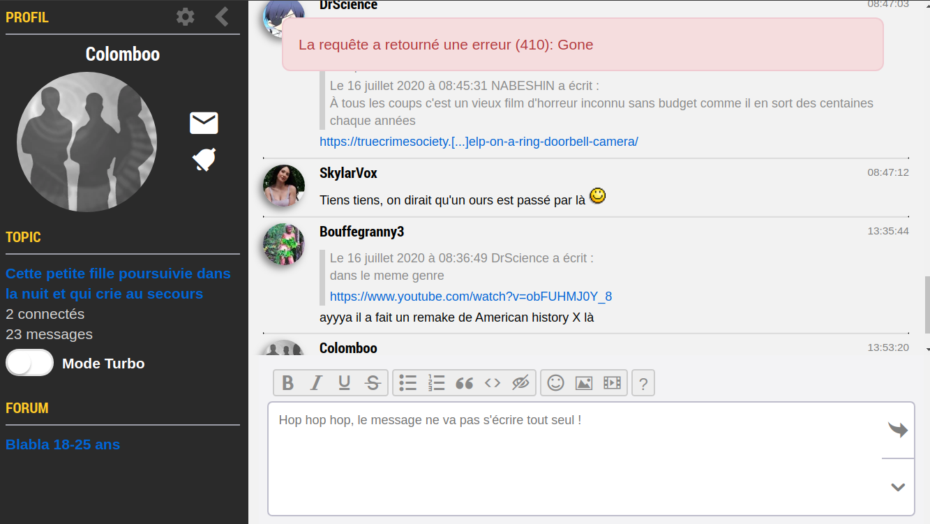 Putain ce forum même plus capable de garder ce qu'il a de plus intéressant