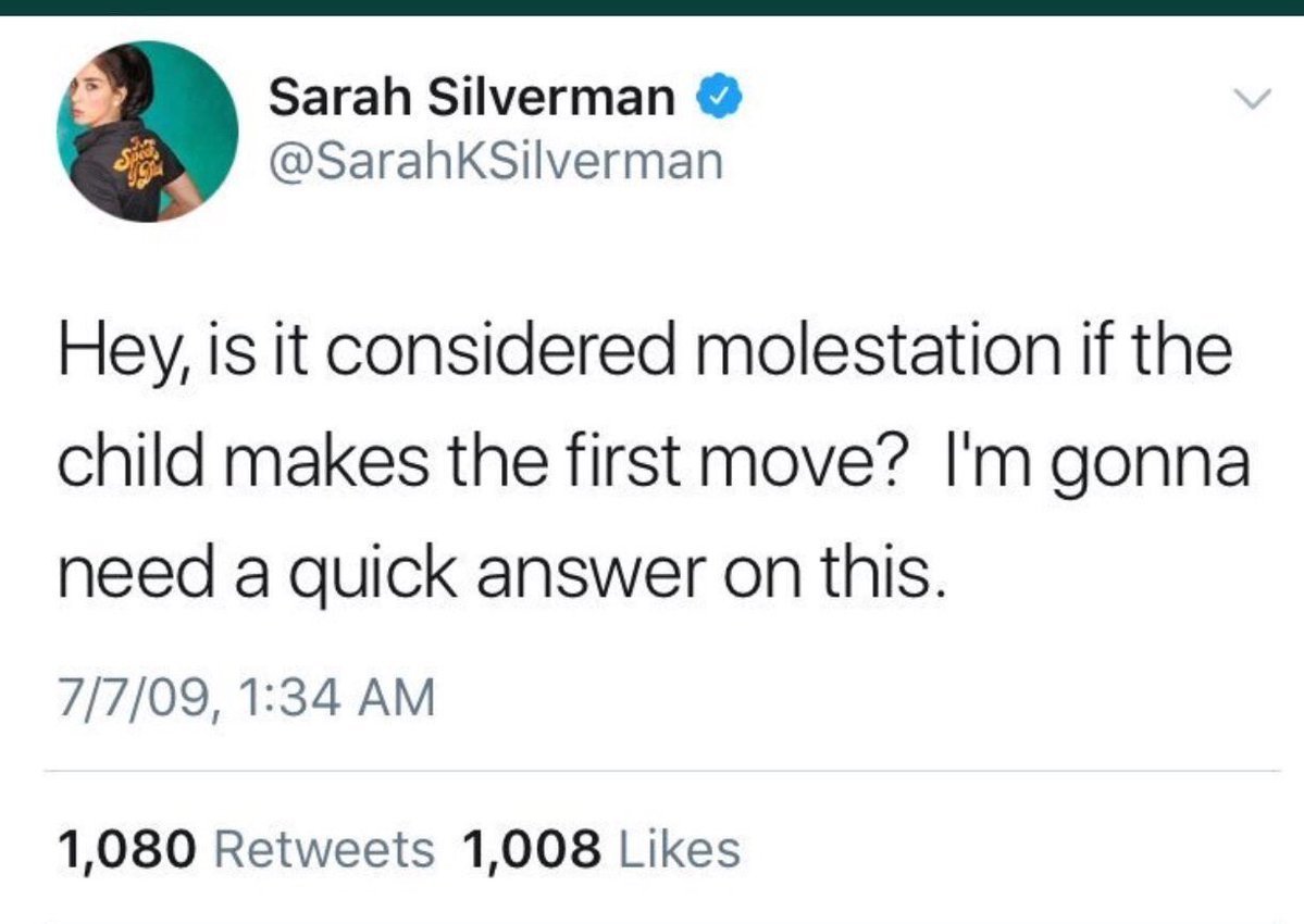 Apparemment une certaine Sarah Silverman est dans une merde similaire actuellement sur Twitter avec des tweets du meme acabit