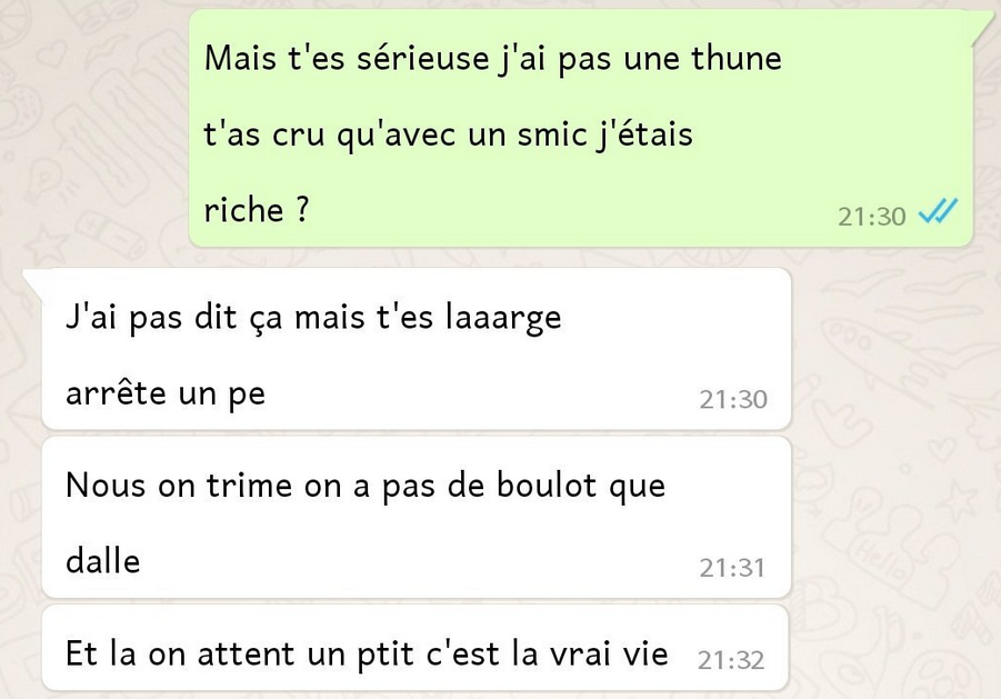 Origine du copain ? Pis c est ta famille tu te dois de l aider un peu. 300 e c est rien pour la famille.