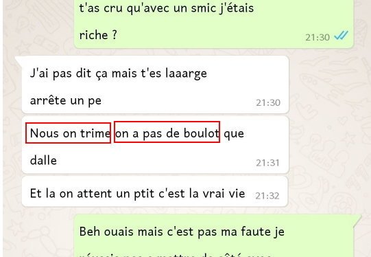 mais bordel tu crois que c'est à lui de trimer pour eux alors qu'ils sont tout les deux au chomages ?