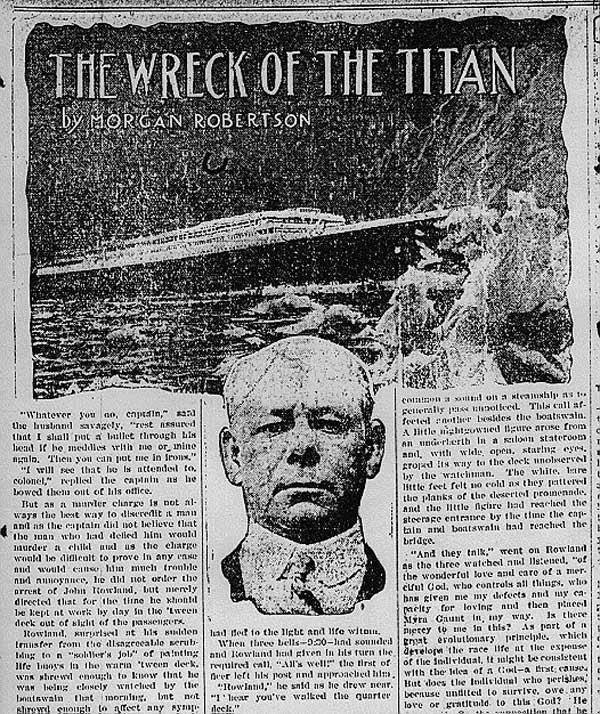 En 1889, Morgan Robertson écrivit un livre intitulé “Wreck of the Titan” (Epave du Titan) qui décrivait en détail la disparition d’un paquebot de luxe qui heurtait un iceberg et tuait tout le monde à bord.