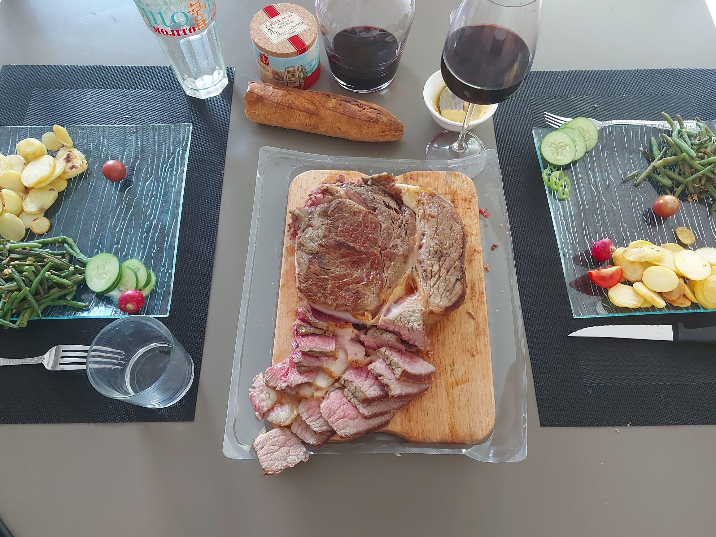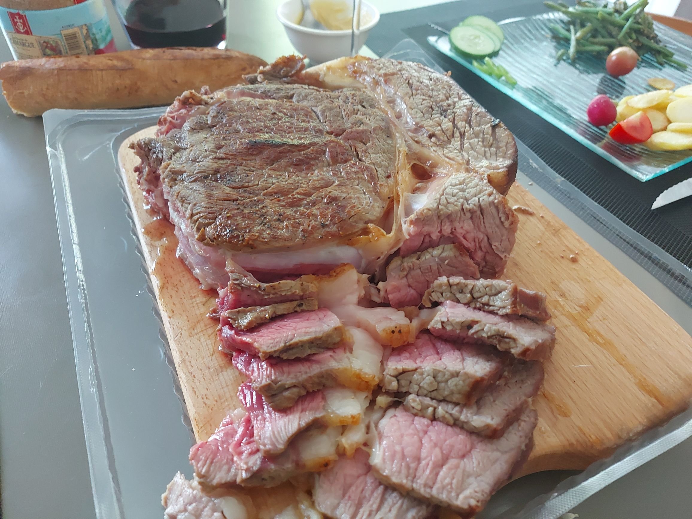 ...sa CÔTE de bœuf de 2KG servie avec les légumes du jardin.