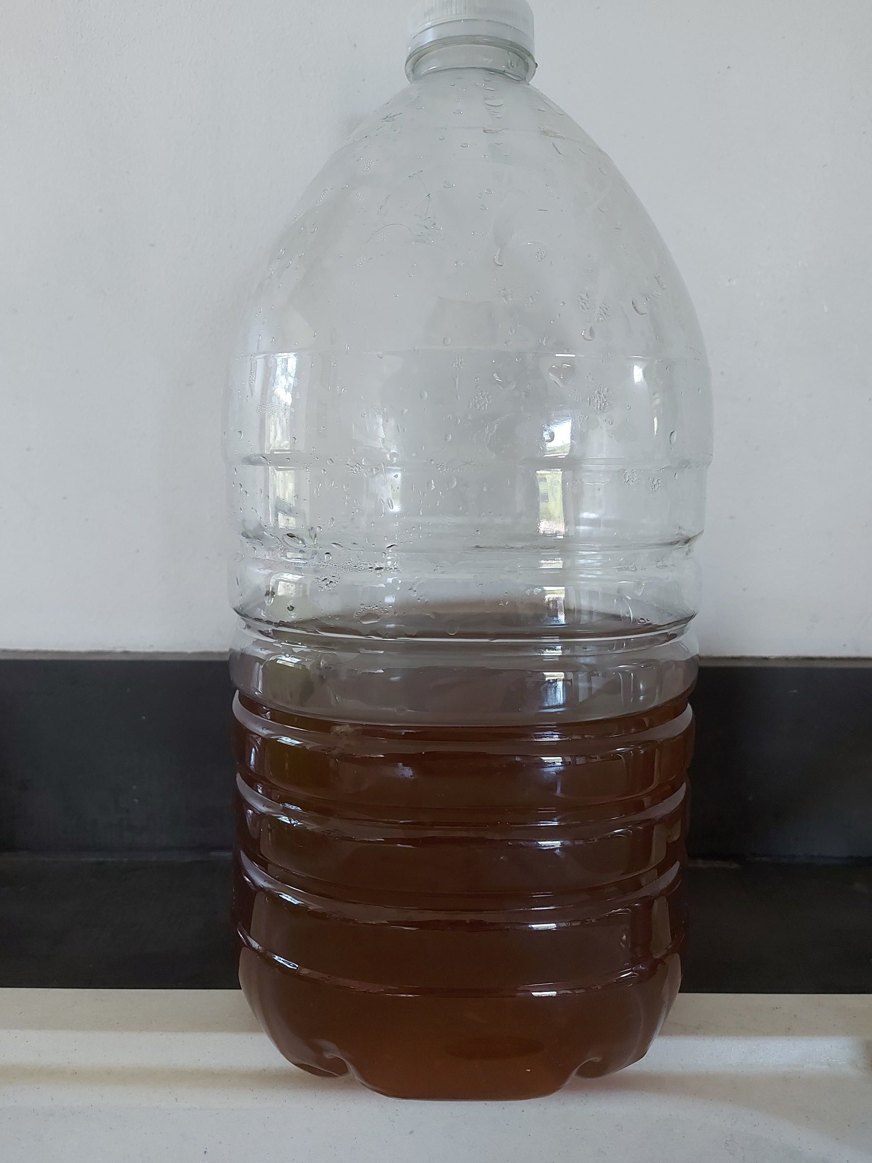 Au bout de 40 jours on filtre l'eau de vie, on balance les feuilles.