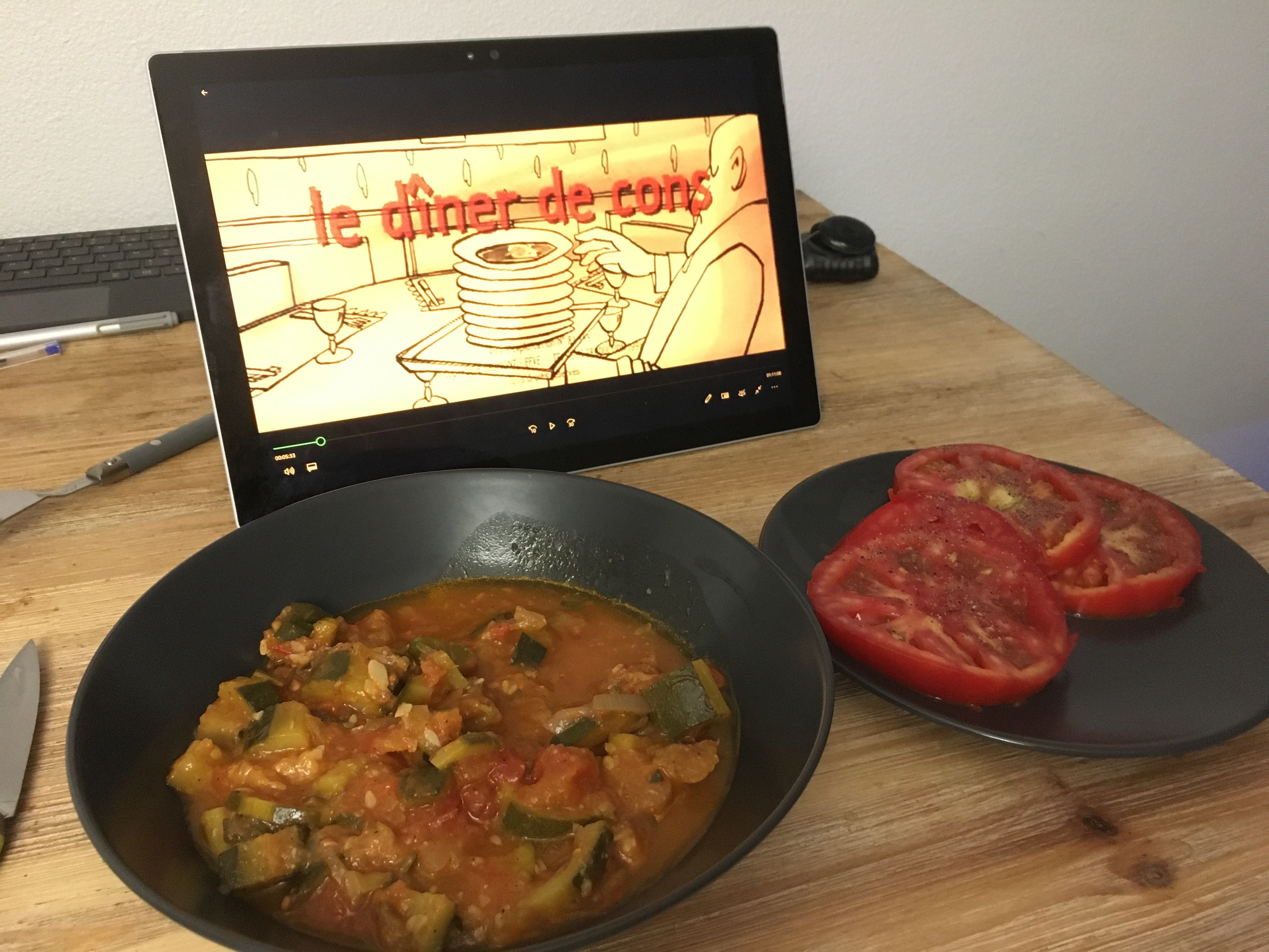 Ce soir je me fais une petite « ratatouille » Et quelques tranches de tomate avec quelques légume qui viennent direct du producteur (mon beau père)![]()