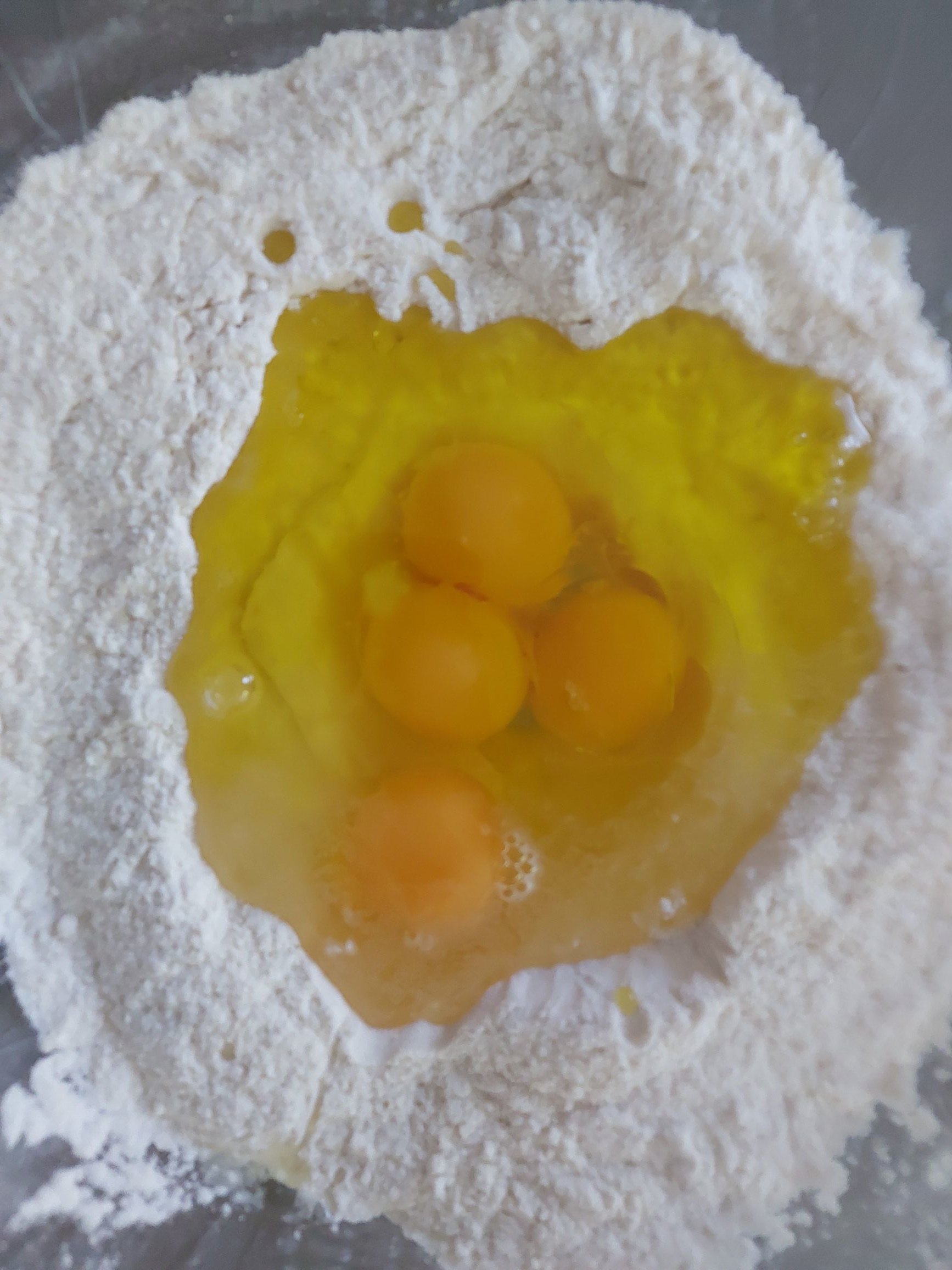 Faîtes vôtre omelette. Cassez 2 oeufs, battre, beurrer une grande poêle et faites cuir l'omelette.