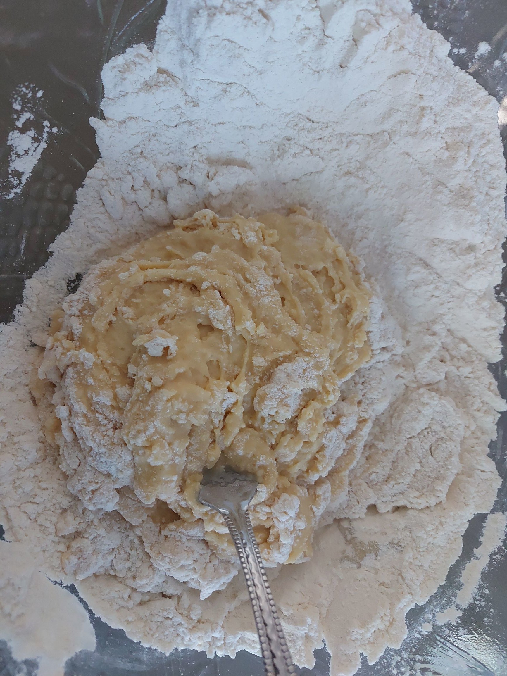 C'est le moment de remuer tout ça ! C'est assez long ! Il faut remuer bien 5 minutes pour tout amalgamer ! Au final vous devez obtenir une garniture légèrement rose. Attention donc à ne pas trop mettre de ketchup.