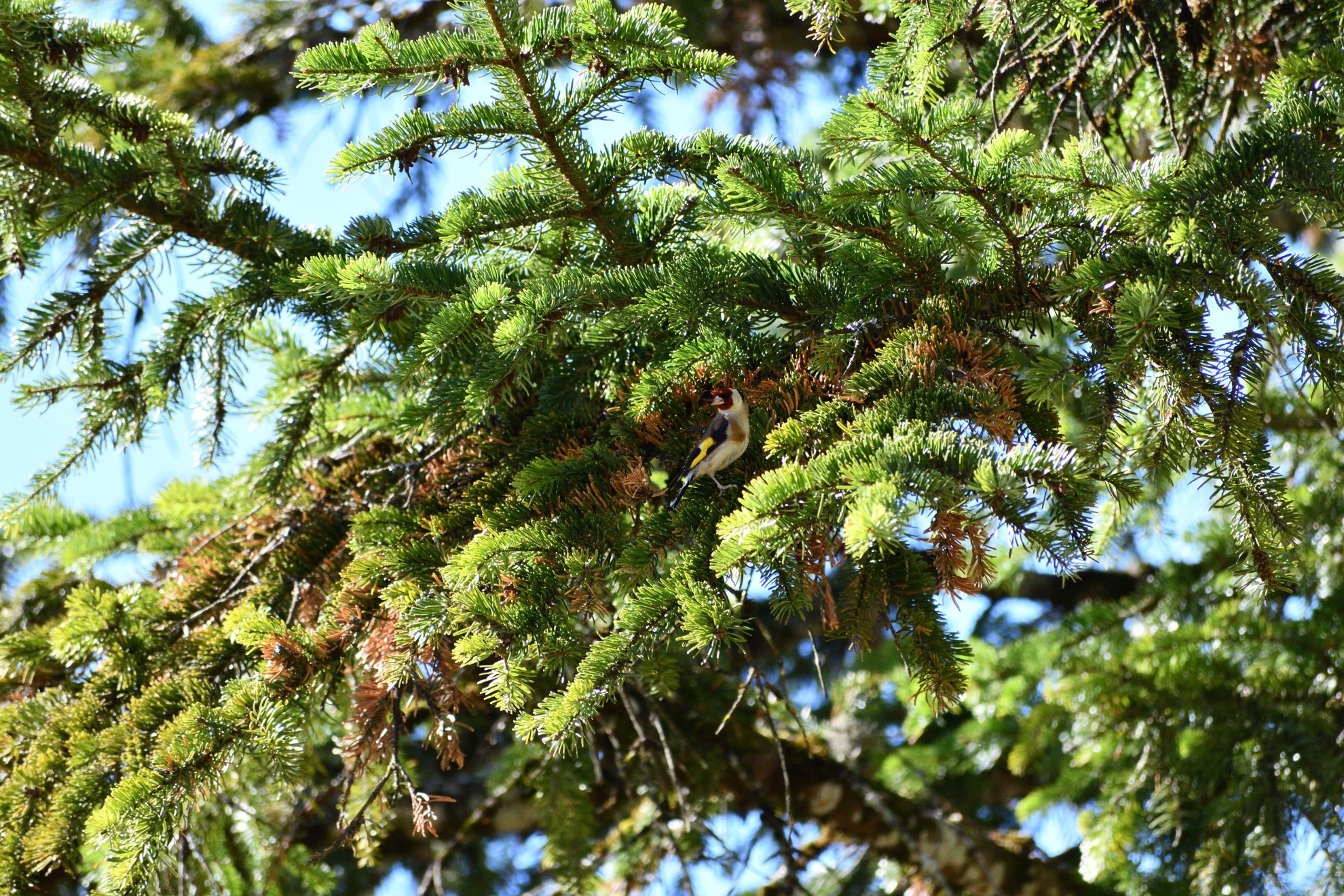 Chardonneret qui malheureusement est dans l'ombre donc j'augmente artificiellement la luminosité