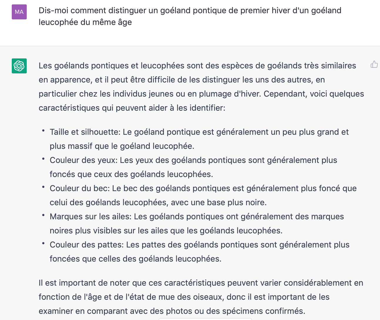 ChatGPT c'est pas encore ça en ornithologie