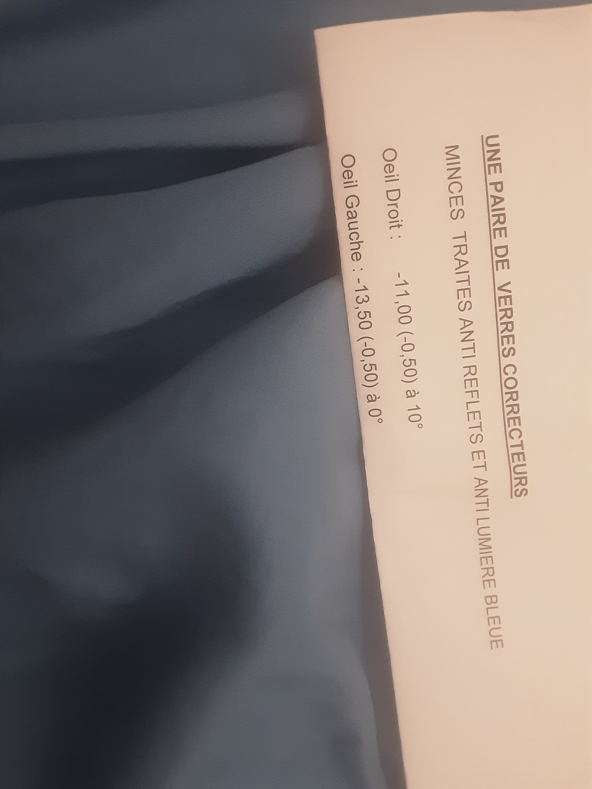 Suite à une opération De Gaulle ne voyait quasi plus rien sans ses lunettes, bon c'était quand il avait 70 ansMais quand meme, tu as un point commun avec De Gaulle, vois les choses du bon coté