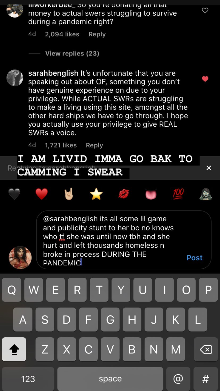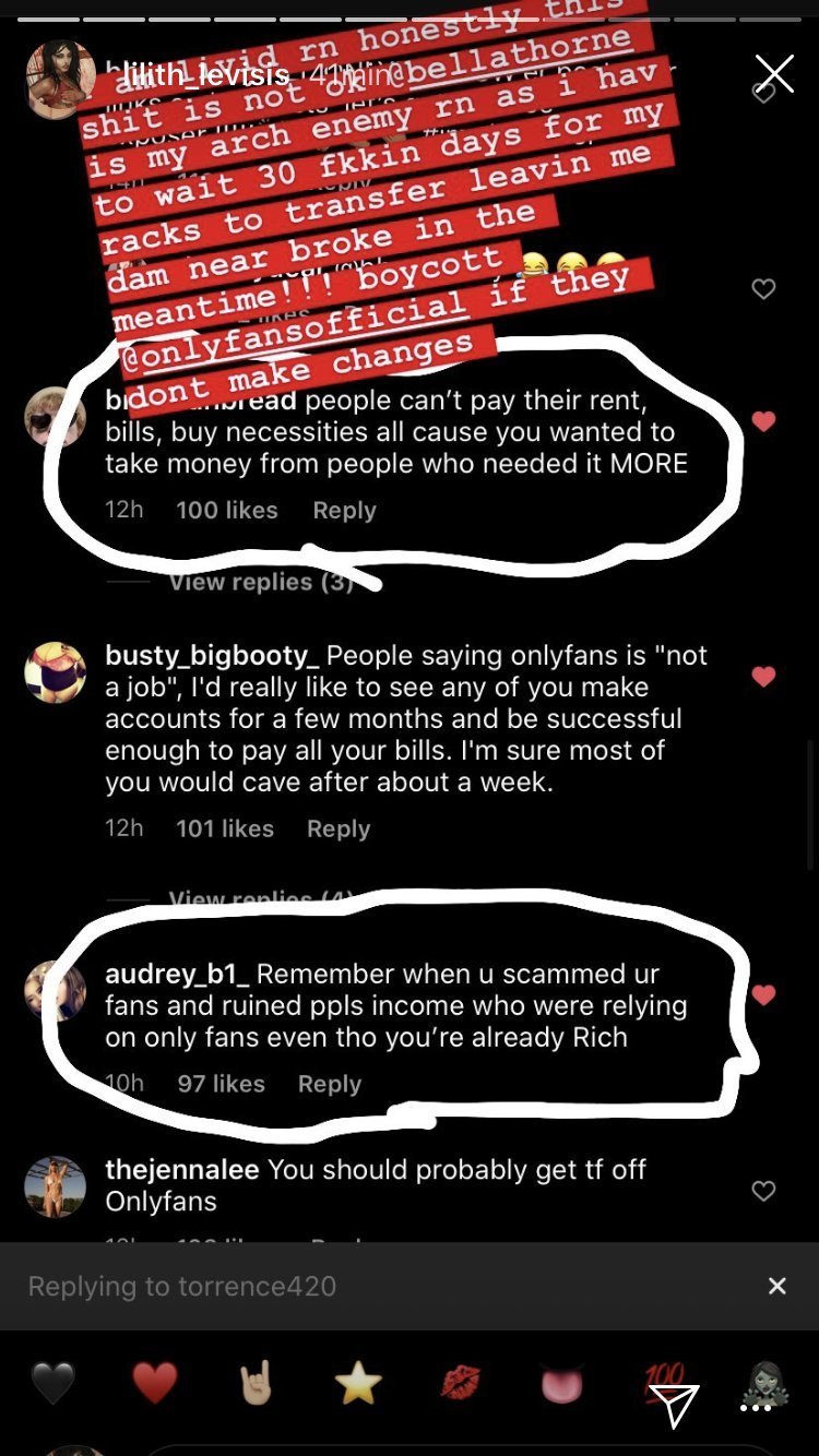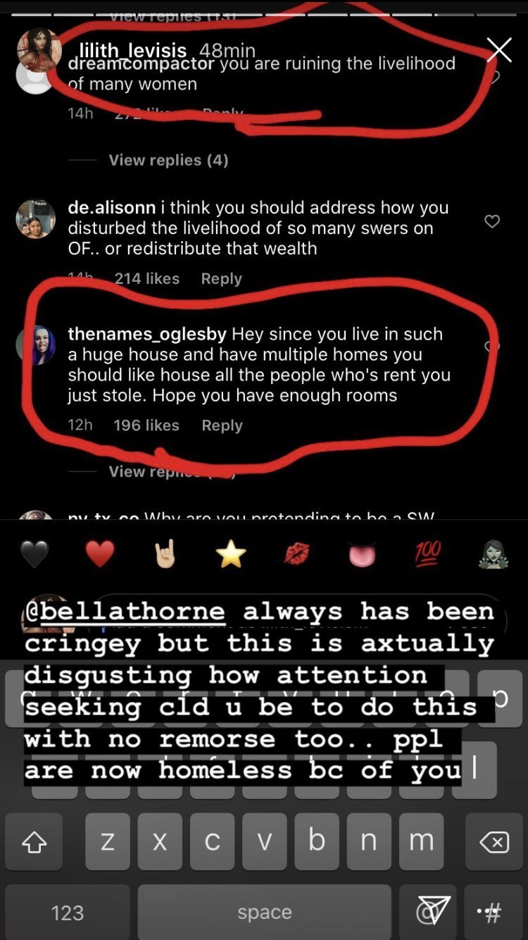 Pour ceux qui auraient pas suivi, Bella Thorne, une meuf qui s’est fait connaître sur Disney Channel, a sorti un Only fans et a fait exploser tous les compteurs. Sauf que le truc, c’est qu’elle a fait payer plein de gens pour des nudes, mais au final c’en était pas, du coup ils réclament leur argent et only fans a bloqué les fonds pour TOUT LE MONDE et a fait baisser les limites de dons pour tout le monde aussi, pour pouvoir pas trop risquer gros si ils se font poursuivre. Et la, t’as toutes les meufs qui se plaignent que Bella Thorne a ruiné leurs vies, qu’elles comptaient sur ça pour payer leur loyer, etc etc.