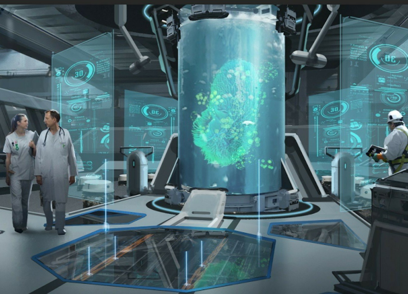 Ces étranges hommes en costume vous emmènent dans une pièce qui ressemble à un laboratoire.