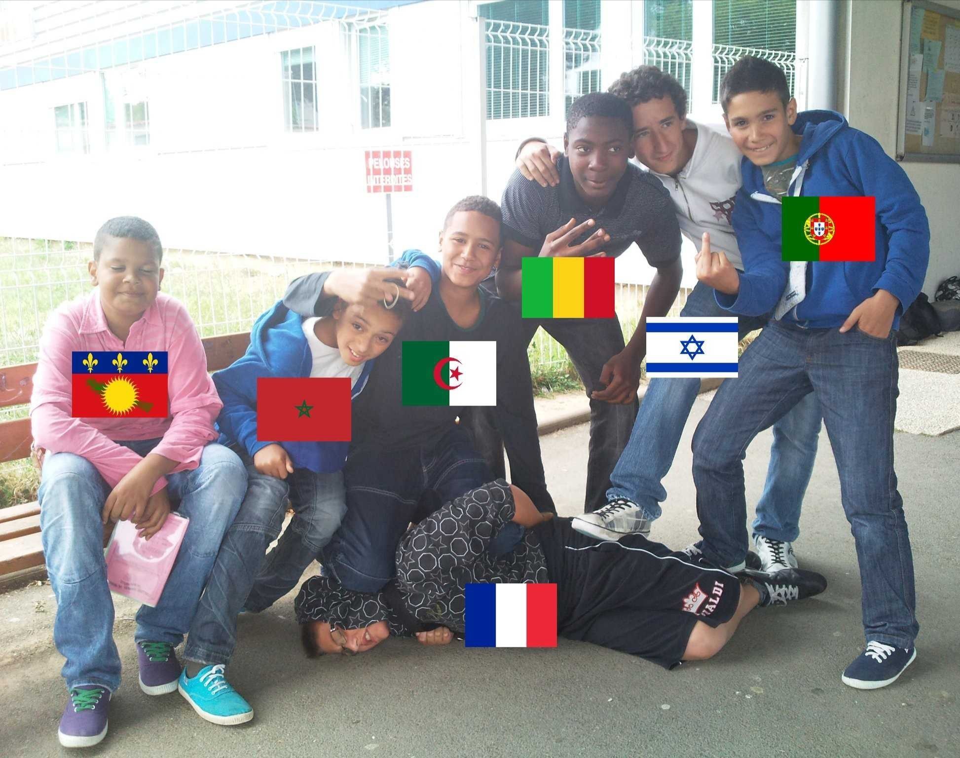 + Avec le covid, le groupe d'enfant, et la prof sont séparés lors de la photo, pour pouvoir incruster le prof sans masque.