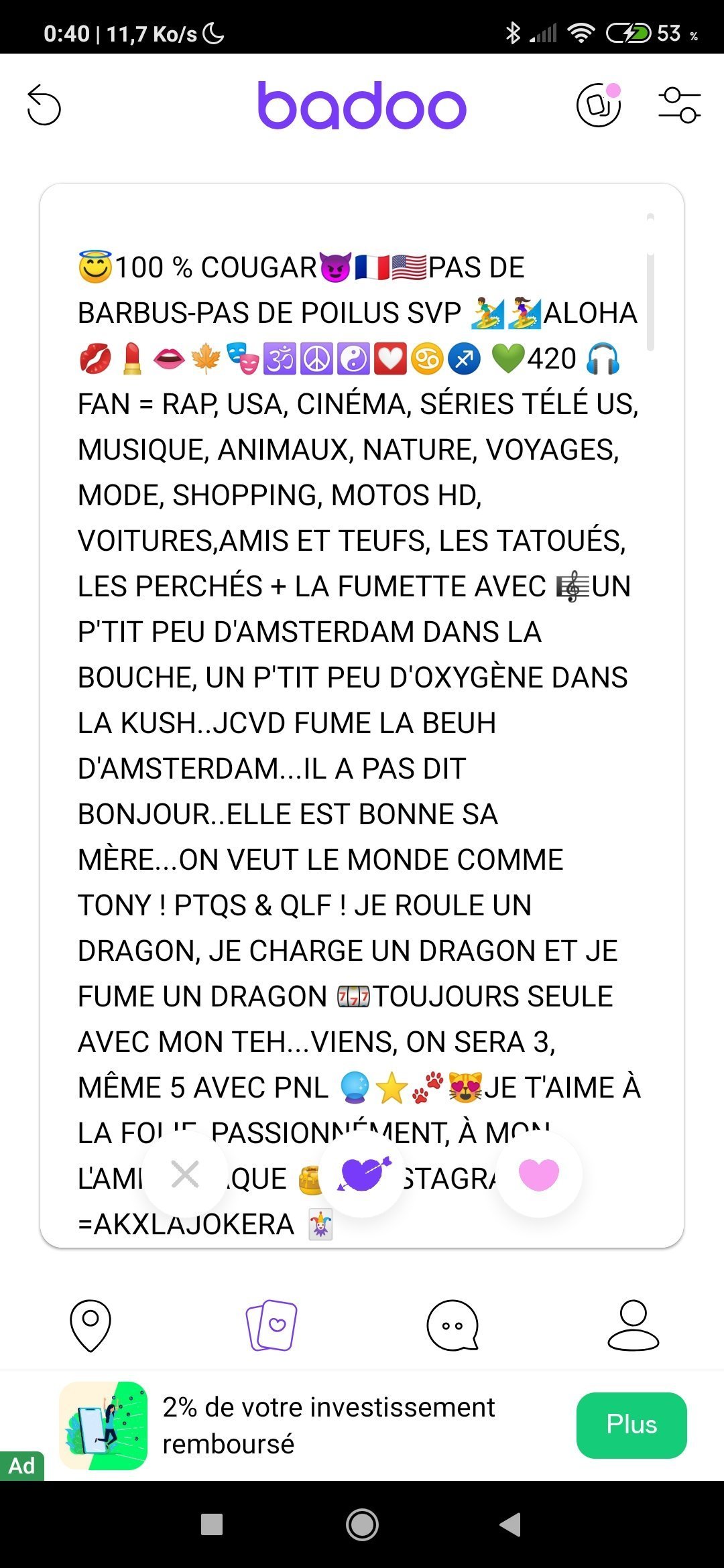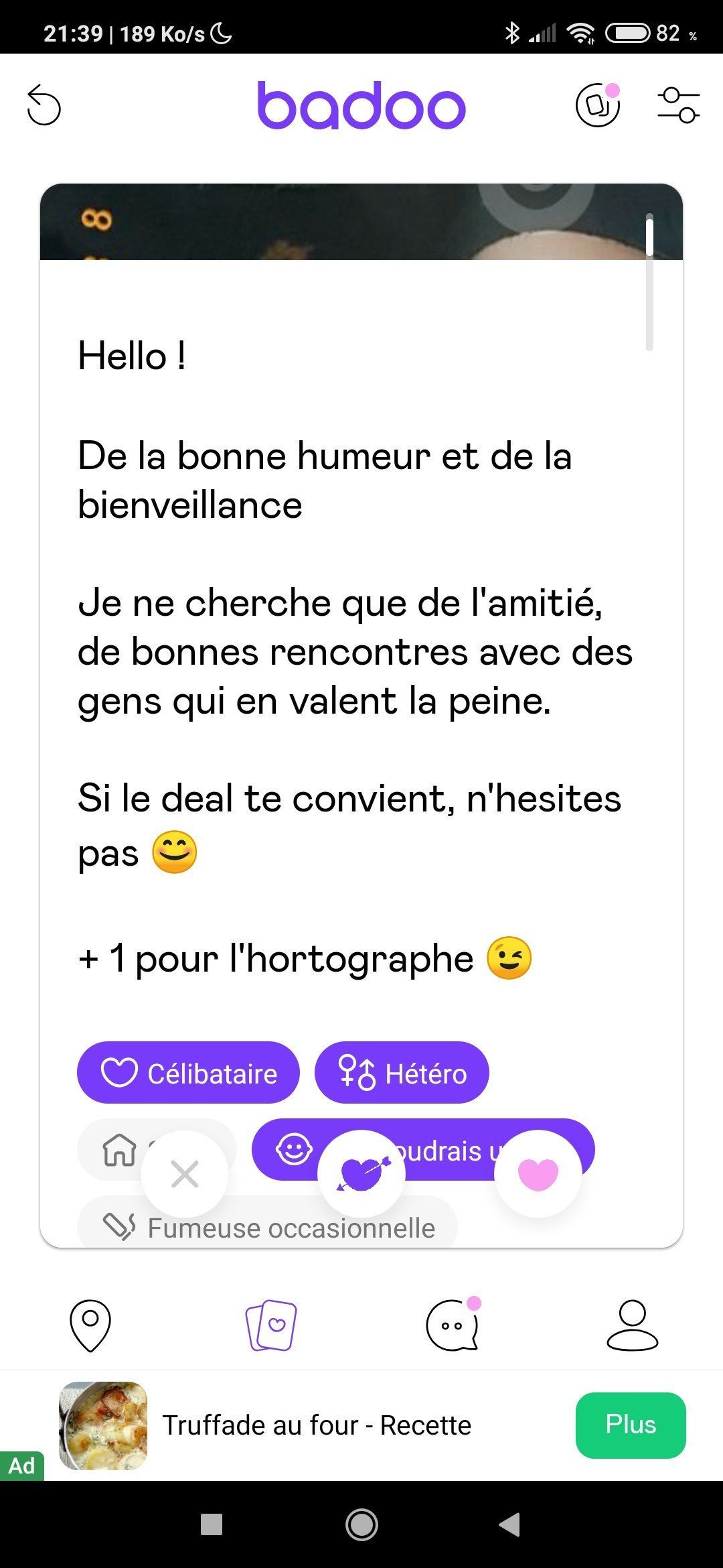 C'est que son profil est rempli de photos d'elle en selfie, en train de bouffer une pizza