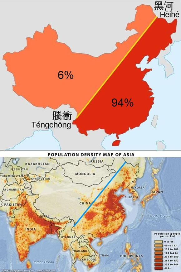 94% des Chinois vivent à l'est (Shanghai, Pékin, Chengdu, etc...)